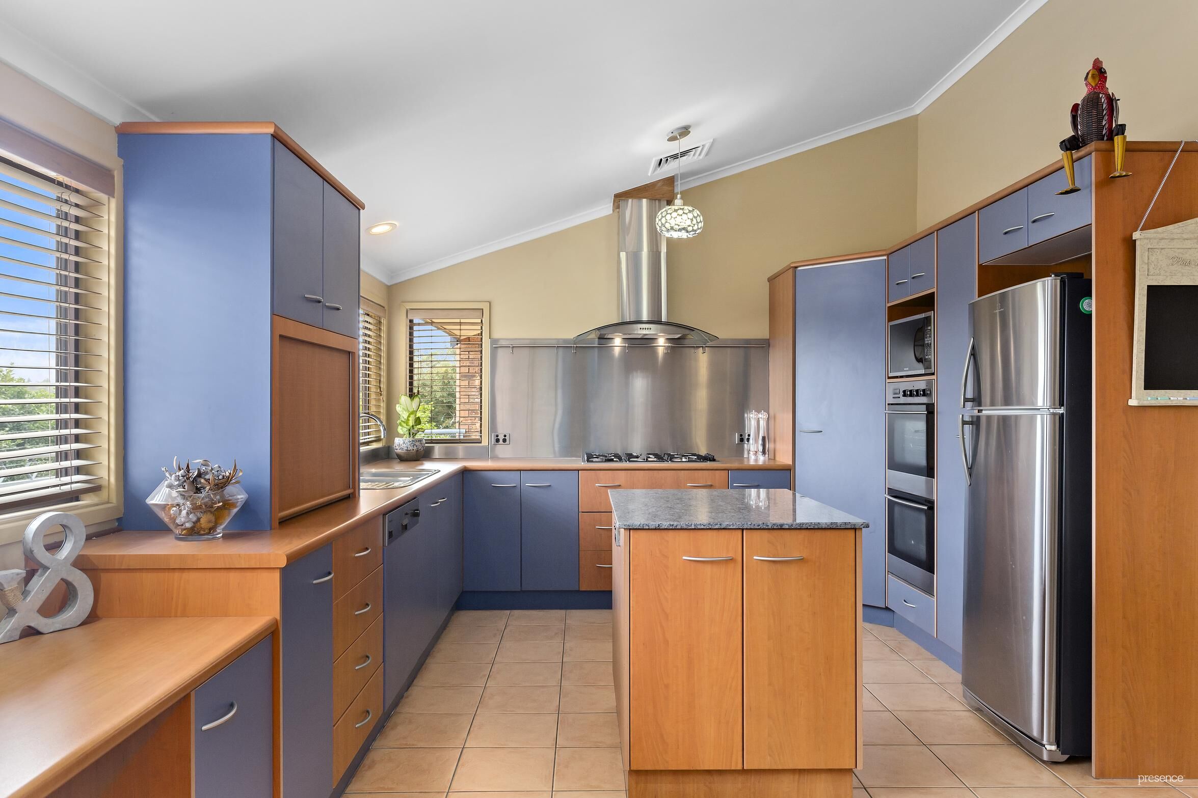 • Expansive kitchen with granite-topped island bench, stainless steel splashbacks, a 5-burner gas hob, corner pantry and appliance cupboard, as well as ample benchspace and storage.