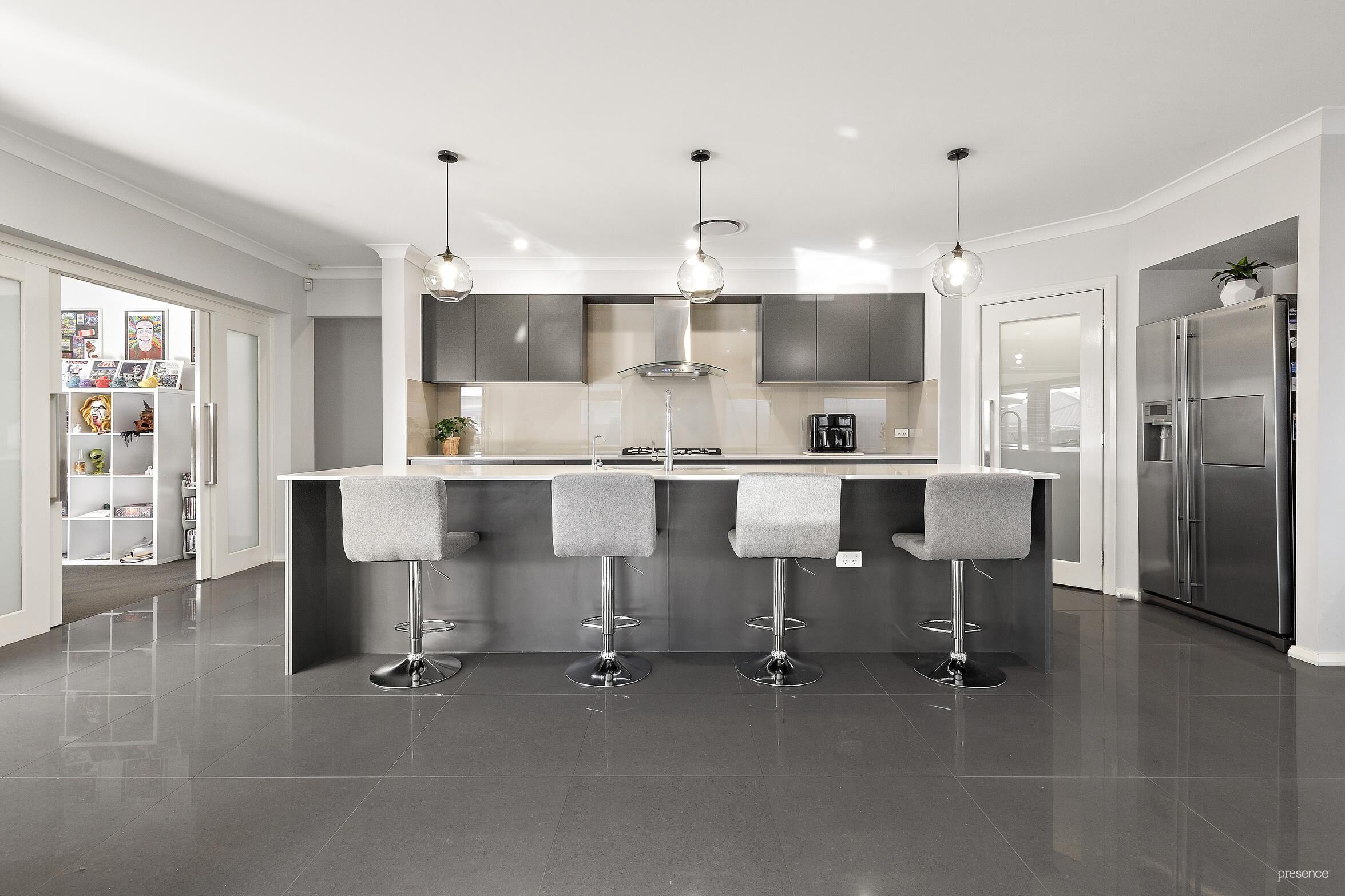 A sun drenched pool is framed by tropical gardens and sleek glass fencing and nestles up again a timber cabana with succulent garden borders and egg swing chairs for when it is time to chill. Picture yourself here this Summer – it is going to be a cracker! On a 800sqm block this home is perfect for those who have all the toys. There are two driveways, an attached double garage with internal access and a huge second garage with soaring ceilings, room for two vehicles and even more off street parking. Bring the boat, caravan, jet skis, mountain bikes, surfboards and motorbikes and get ready to live your best life in this truly next level home!