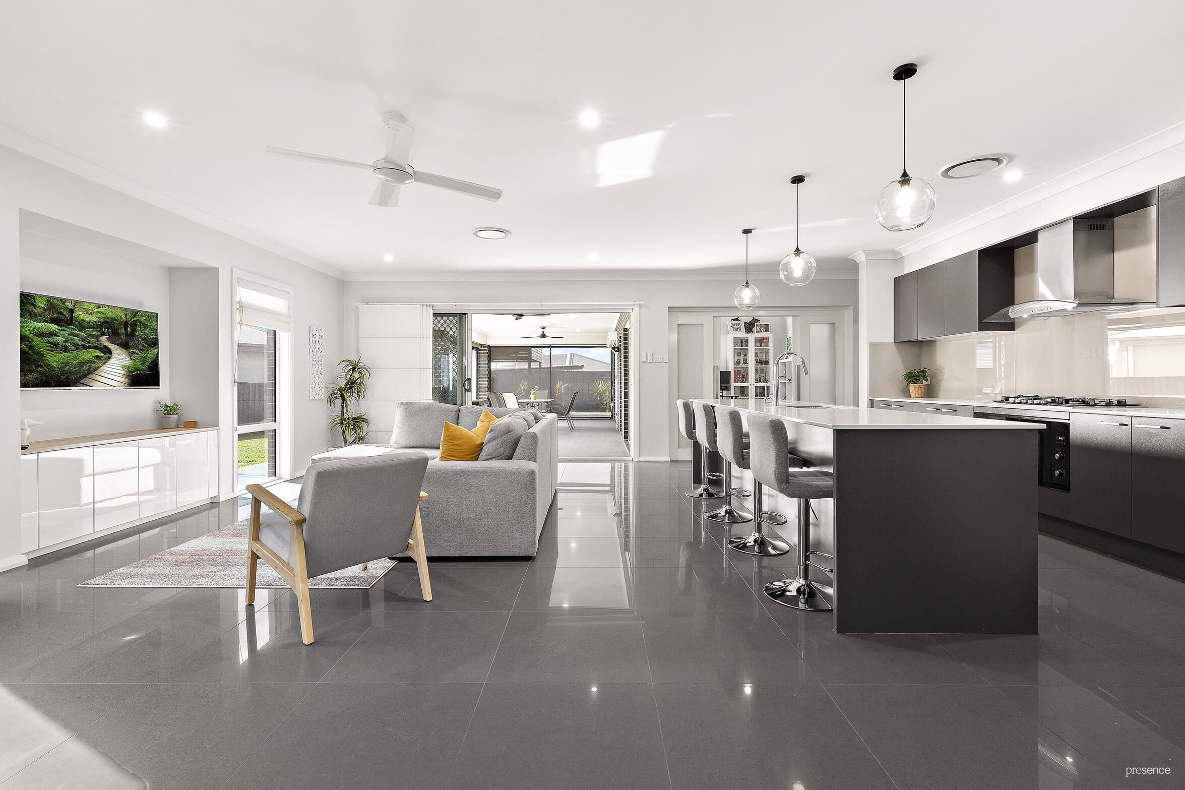 Built by McDonald Jones, this home features four robed bedrooms – the master with dual walk-in robes and luxe ensuite – a dedicated office, a huge, contemporary kitchen with stainless appliances and a 900mm gas range, an open plan living and dining space and a second separate lounge room. The over-sized screened alfresco(with dual blinds) will be the scene of many a family celebration and Christmas feast!
