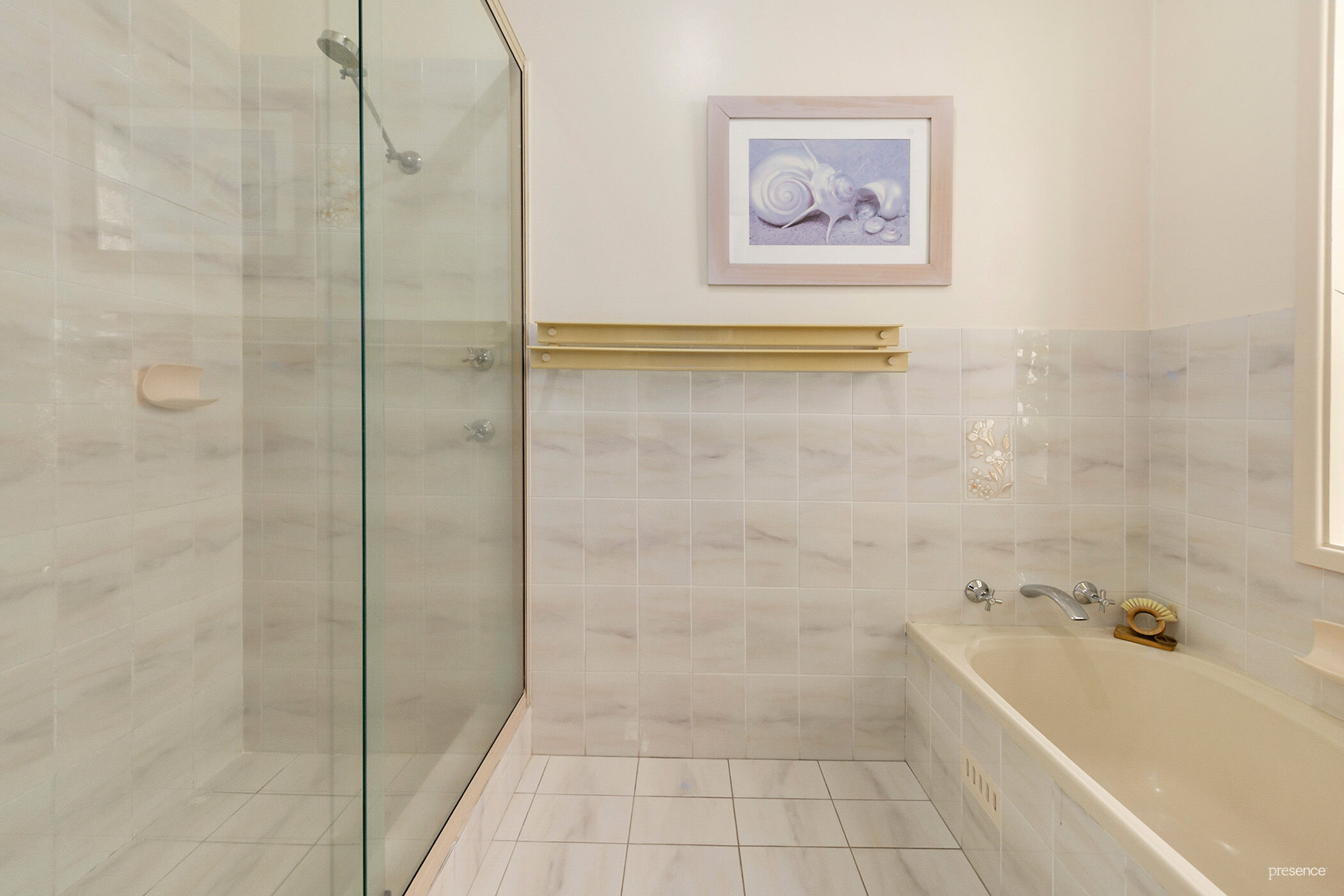Four good-sized bedrooms each have built-in robes and ducted air conditioning. The lovely main suite features sliding door access to a covered patio and pool views. Downstairs is a second living zone, where you can enjoy another lovely waterfront outlook. This versatile room makes a great rumpus room, teen retreat, games room, work-from-home office space or artist’s studio. You’ll also find entry to a hidden wine cellar with historic Redhead timber counters and space for 500 bottles of wine.