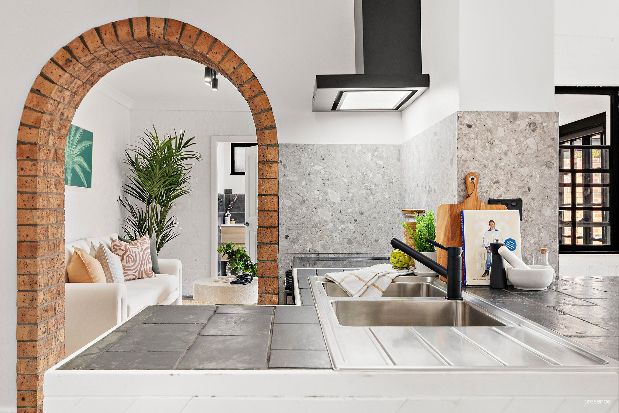 Step inside, and you’ll find a layout that just works. Downstairs boasts a versatile fourth bedroom or office, while upstairs houses the other three bedrooms, including a master with a walk-in robe and ensuite. The kitchen is the heart and soul, seamlessly connecting the two living areas and dining room and spilling out into a tranquil courtyard garden. Prized in this area is the single garage, which surprises with its rooftop entertaining space with further possibilities. With the green light from the DA, you could add extra accommodation linking the garage to the home.