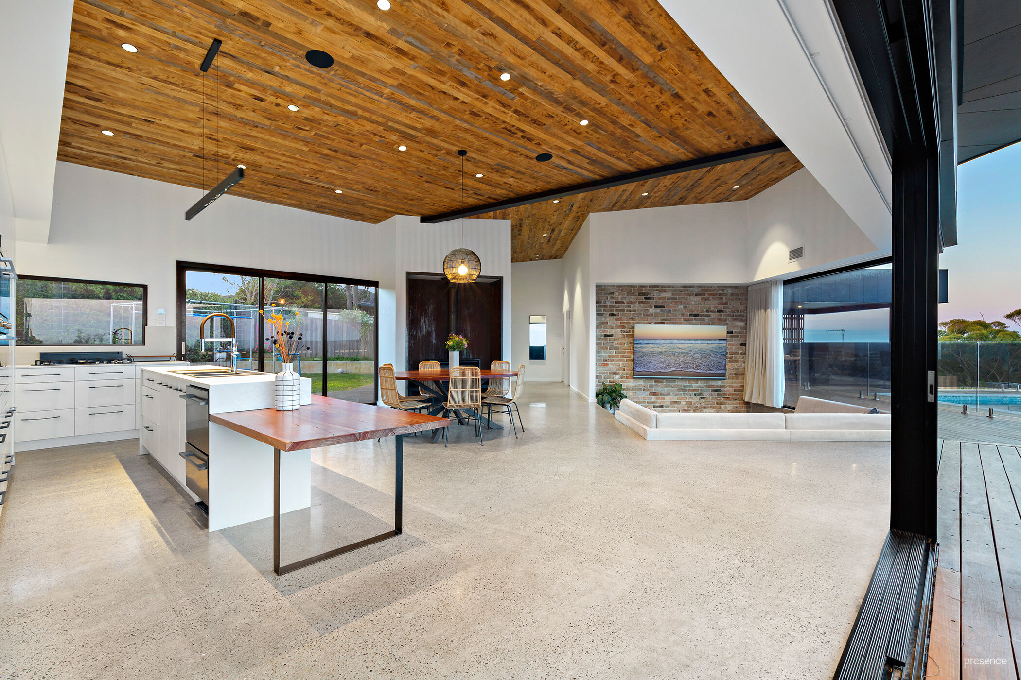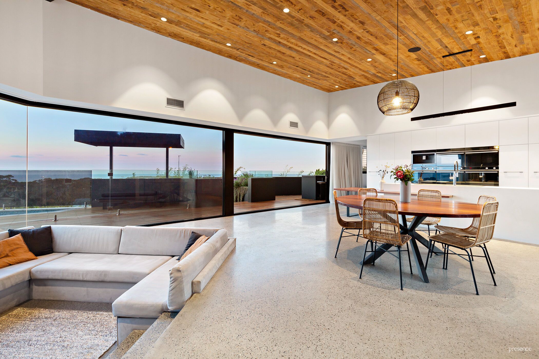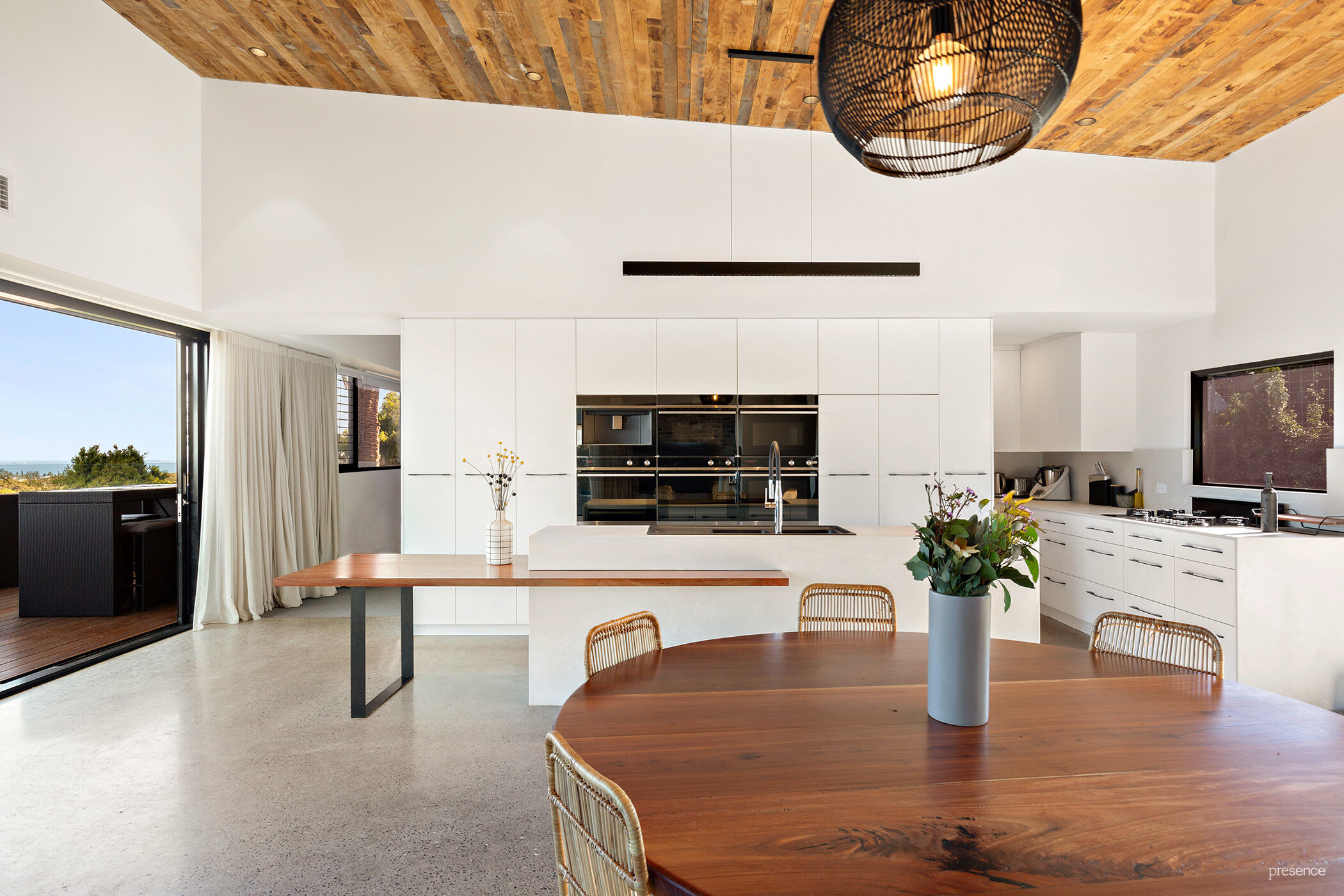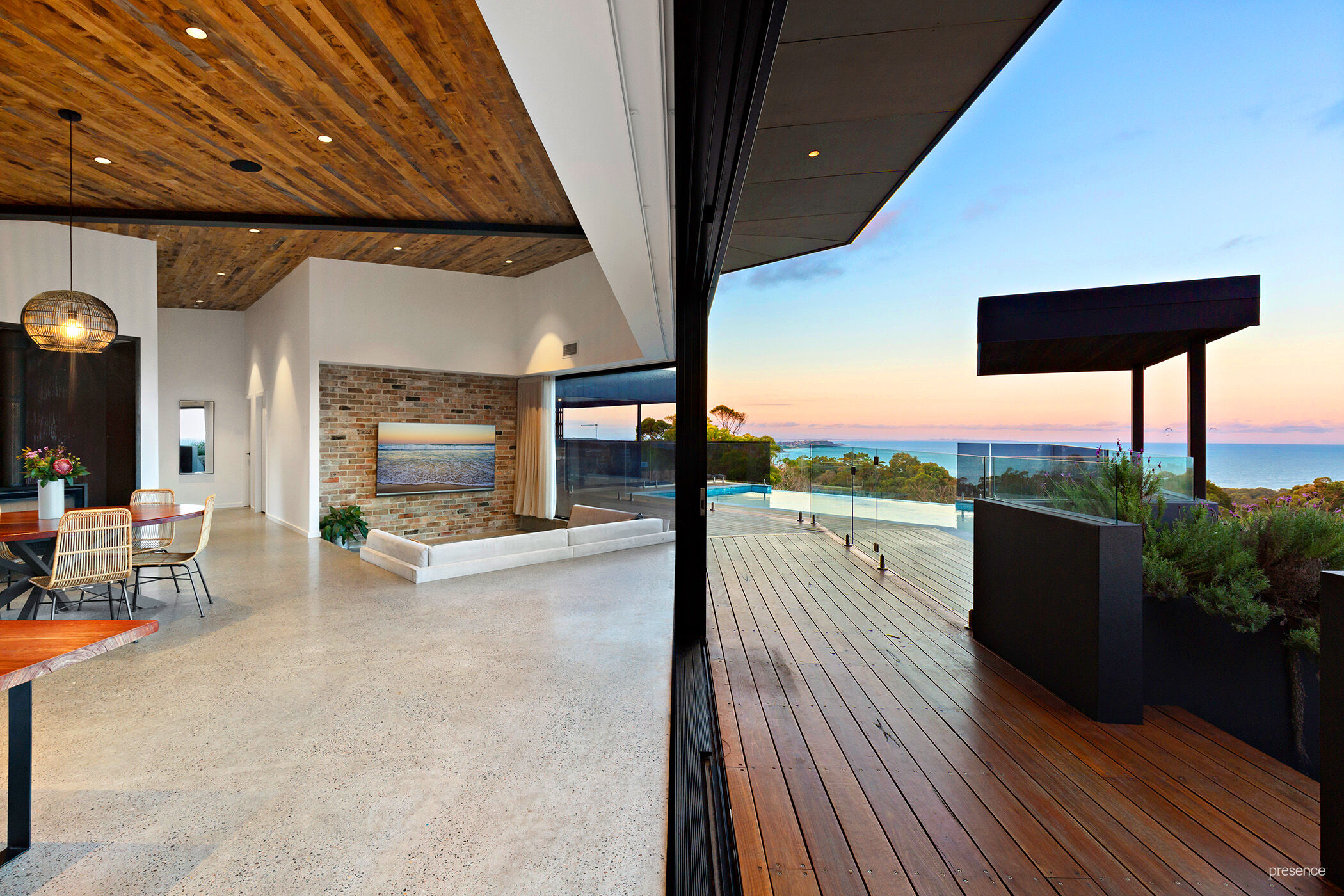 Phenomenal ocean views. Immense open space. Vast ceilings reaching heights up to 4.1m. Sweeping polished concrete floors. Custom-built reclaimed hardwood features. It’s like nothing you’ve seen before – in an elevated position at the end of a grand driveway, this architecturally spectacular 5-bedroom home is extraordinary, luxurious, and uber-cool.