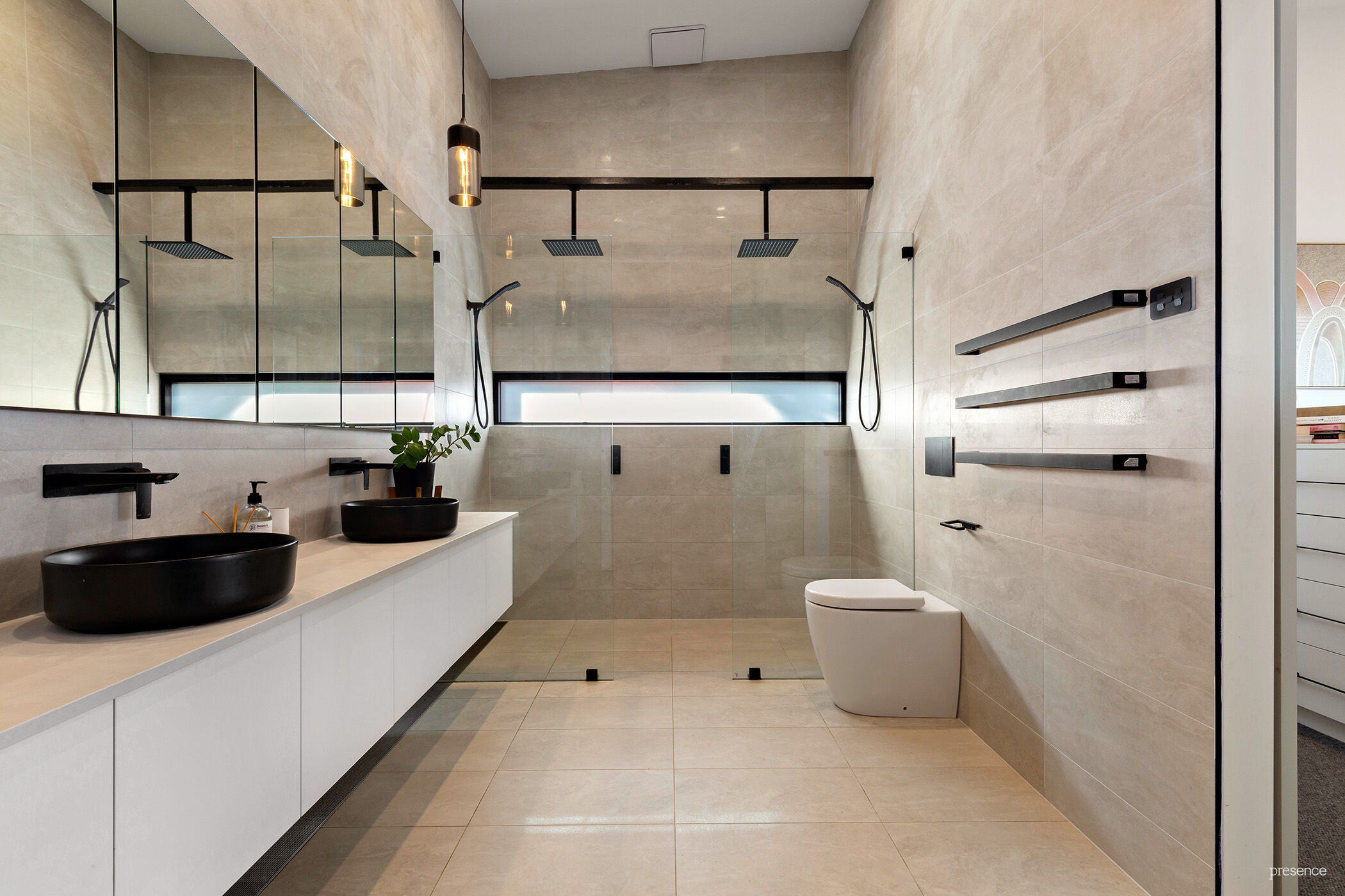 – Integrated sound system, commercial grade windows, zoned ducted air conditioning, modern ceiling fans, custom window fittings