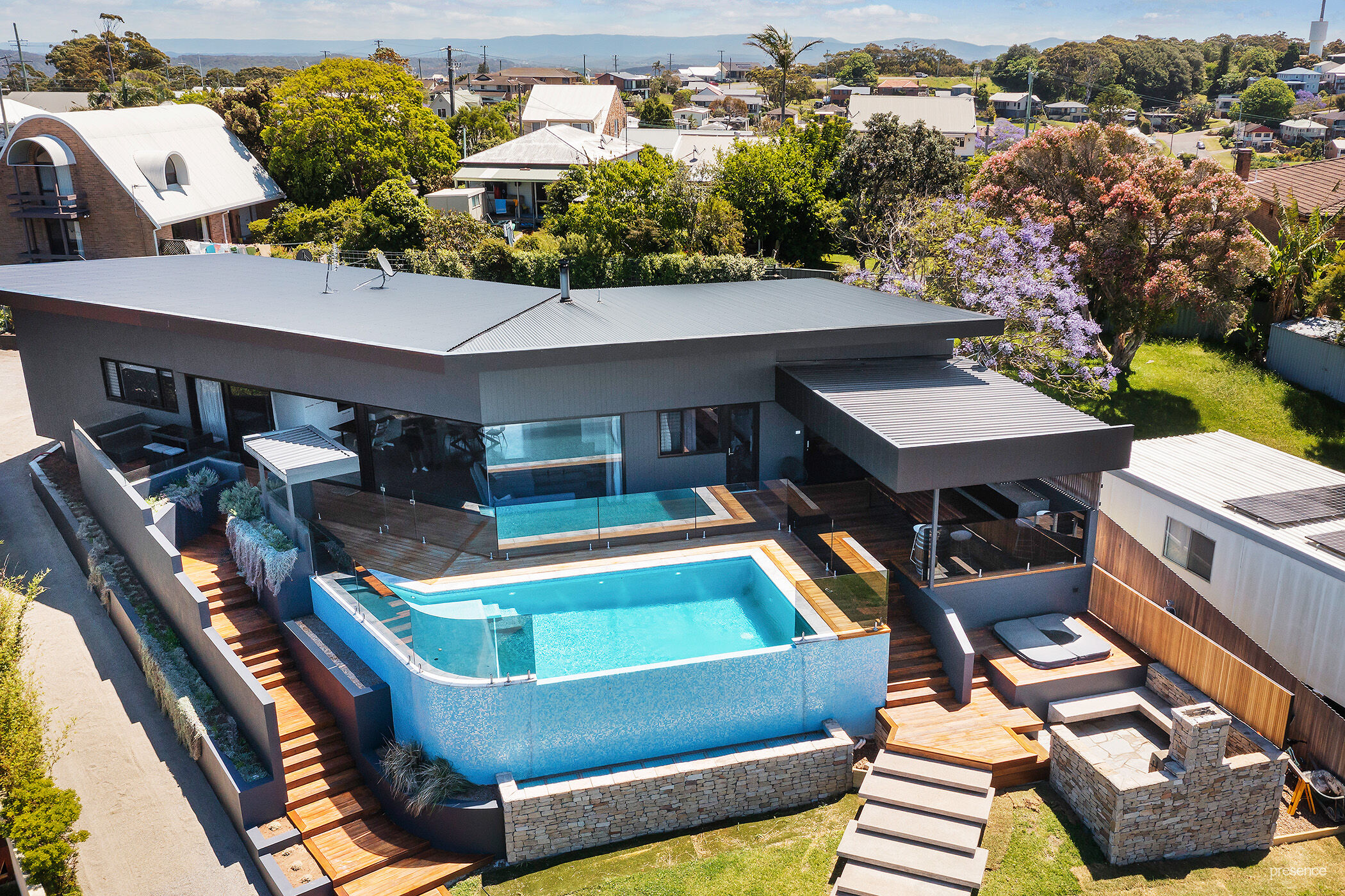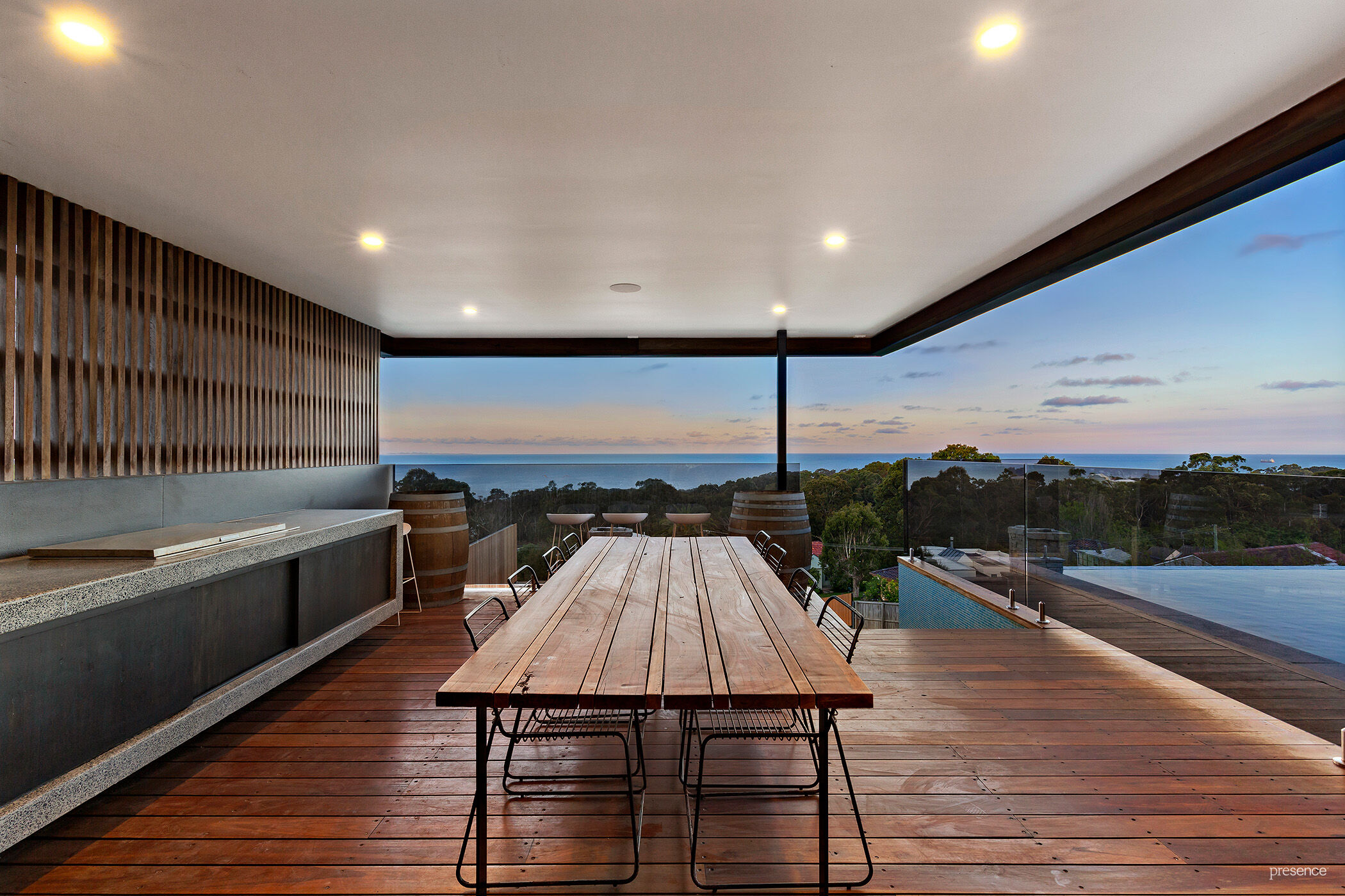 – Vast wraparound deck with multiple sitting areas, outdoor kitchen & BBQ and infinity pool with panoramic ocean view