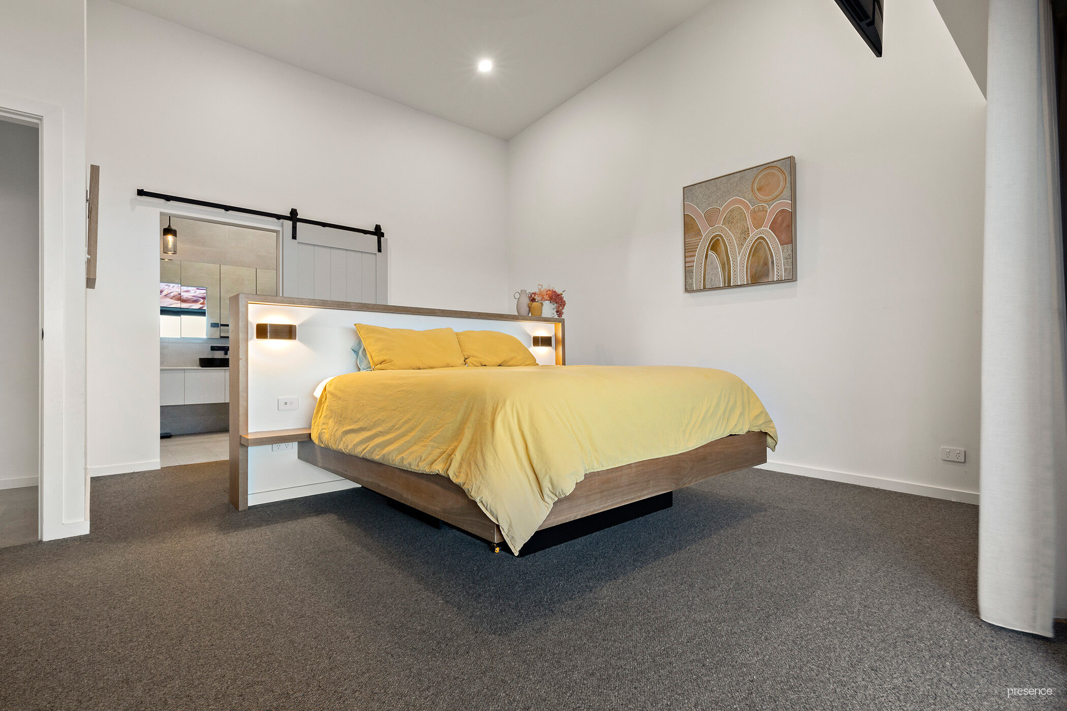 – Standout architecture with reclaimed hardwood skewed ceiling ranging 3.5-4.1m high, polished concrete floors, custom-built hardwood and concrete features throughout, exposed brick feature wall