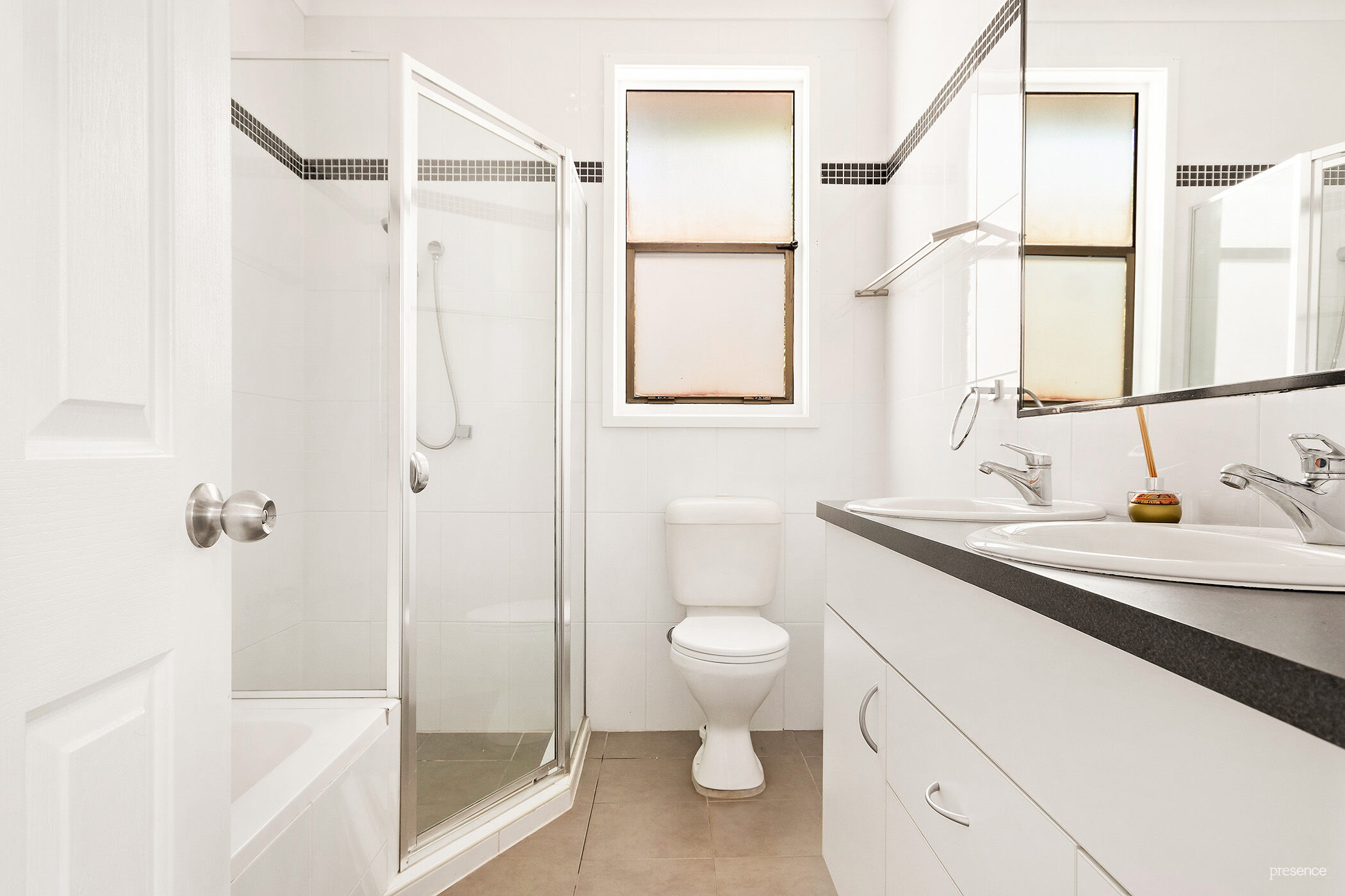 – Main bathroom with twin vanity, separate shower and bathtub