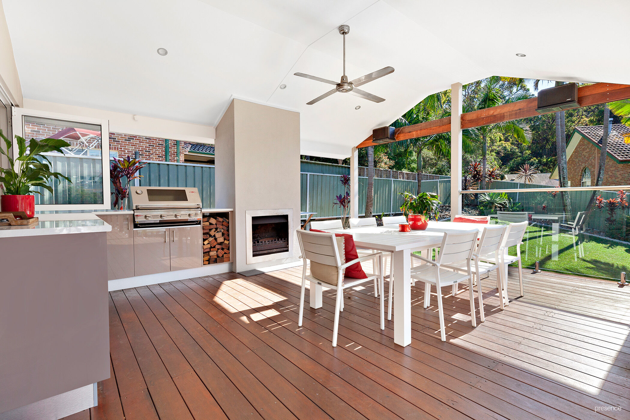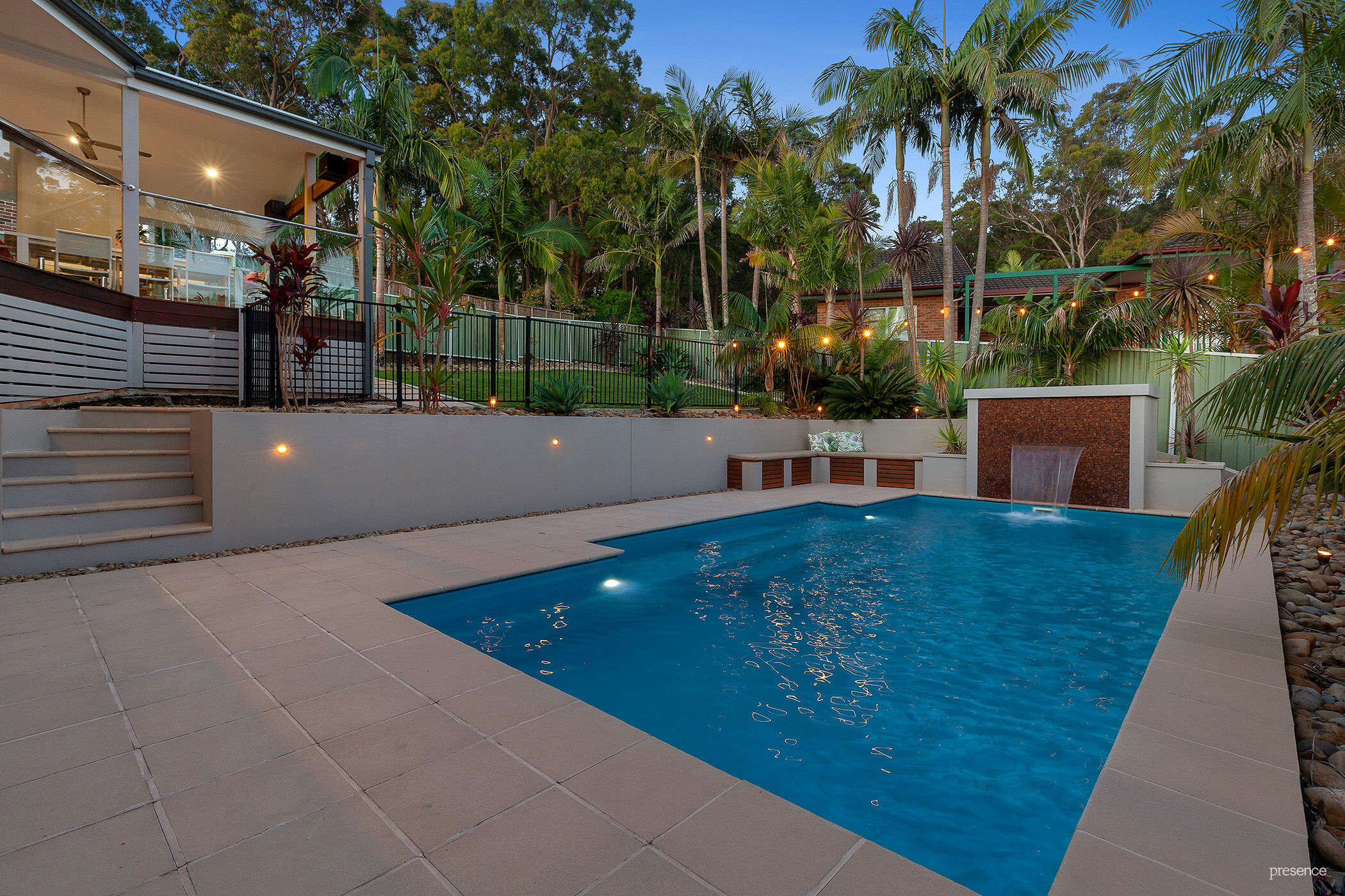 Offering a sense of tranquility inside yet placed just a 400m bush track stroll to all the action on Lake Macquarie, this beautifully updated resort-style family residence is an entertainer’s paradise. Taking the concept of indoor/outdoor living to the max, a huge all-seasons deck complete with an integrated fireplace, barbecue and wine fridge effectively creates an alfresco lounge and sunny gardens with a saltwater pool as the centrepiece to family life.