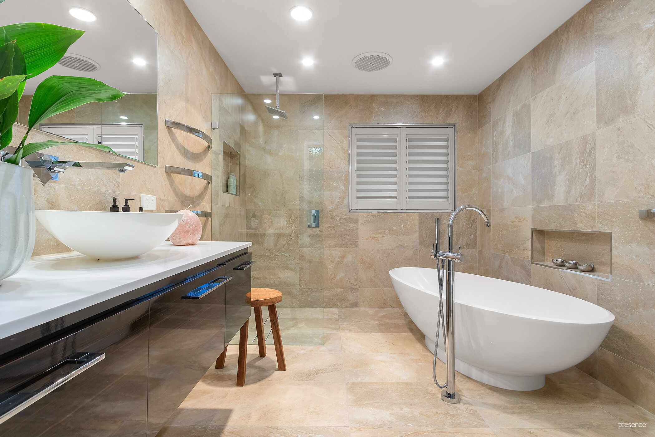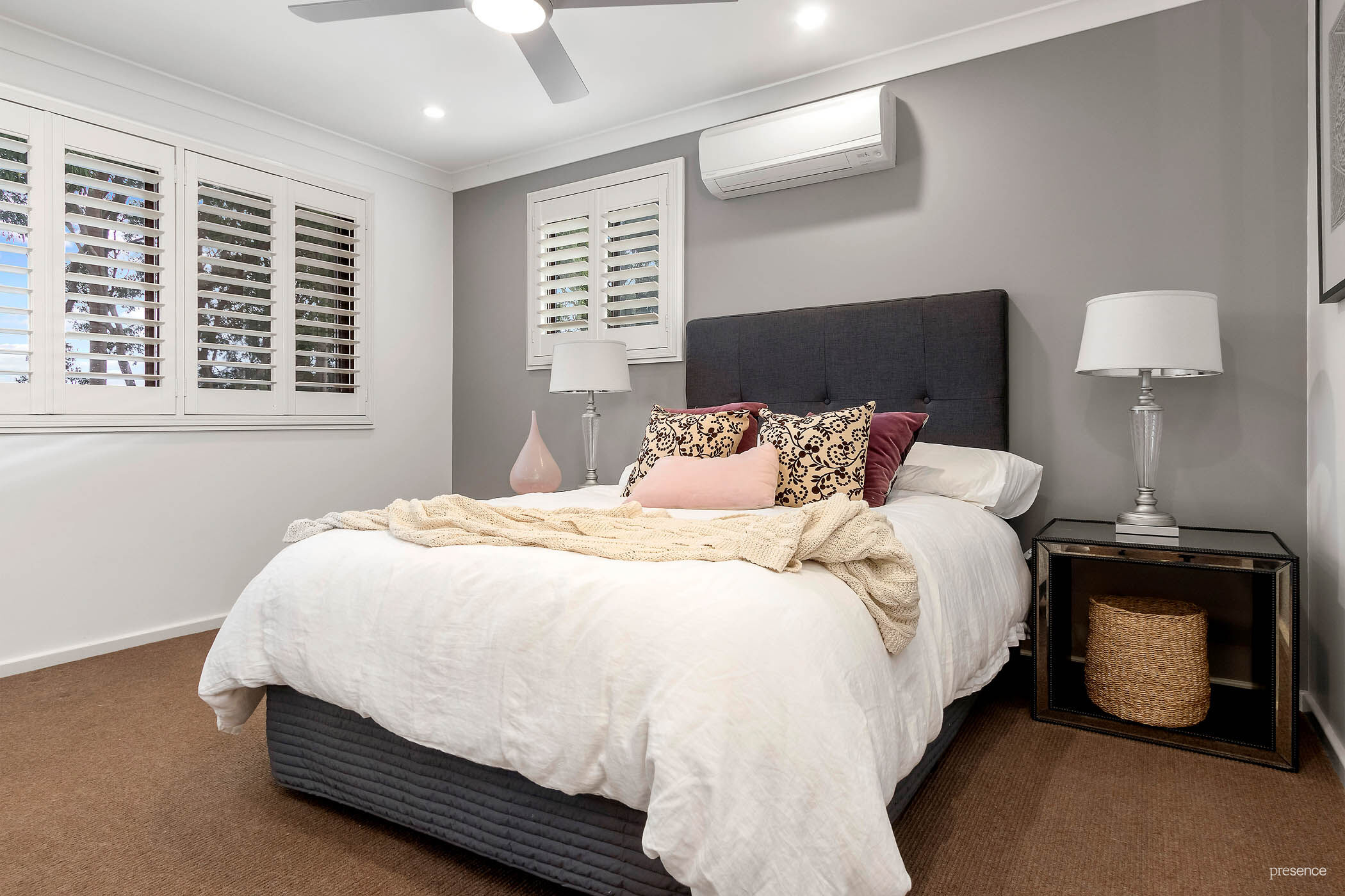 • All bedrooms host ceiling fans and air-conditioners, three of four upstairs bedrooms have built-in wardrobes, serviced by a luxurious main bathroom with freestanding bath and floor mounted tap including handheld, separate rain shower and heated towel rails