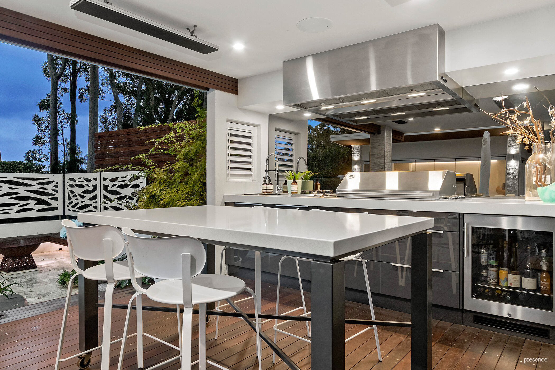 • Outdoor kitchen with built-in Smeg gas BBQ plus separate single burner, sink with pull-out mixer tax, outdoor rangehood, dishwasher drawer and Liebherr wine fridge