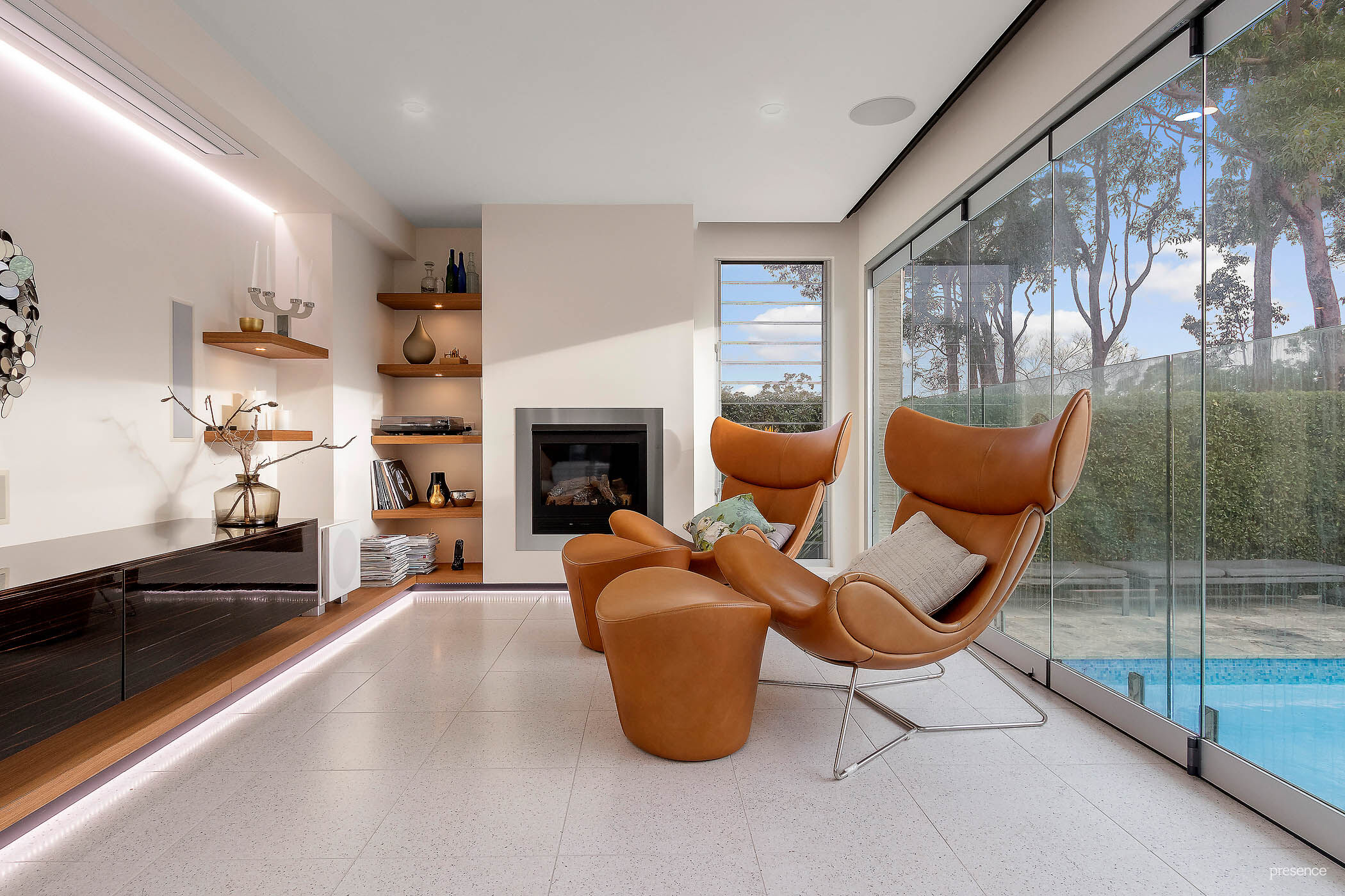 Privately positioned in a premium neighbourhood, this four-bedroom home has been superbly designed over three levels delivering a contemporary merger of expansive living spaces with spacious sleeping areas and highlights at every turn. Bask in the ambience created by the double-sided gas fireplace or retreat to the stunning studio overlooking the pool.
