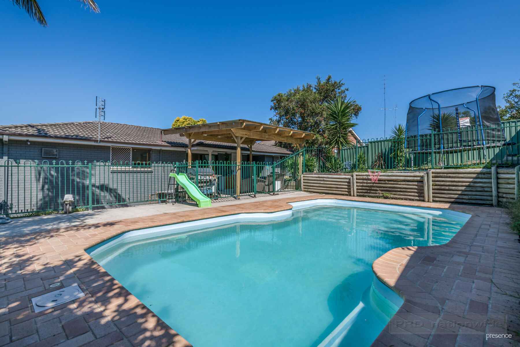 – Rear timber deck and covered garden pergola overlooking the pool