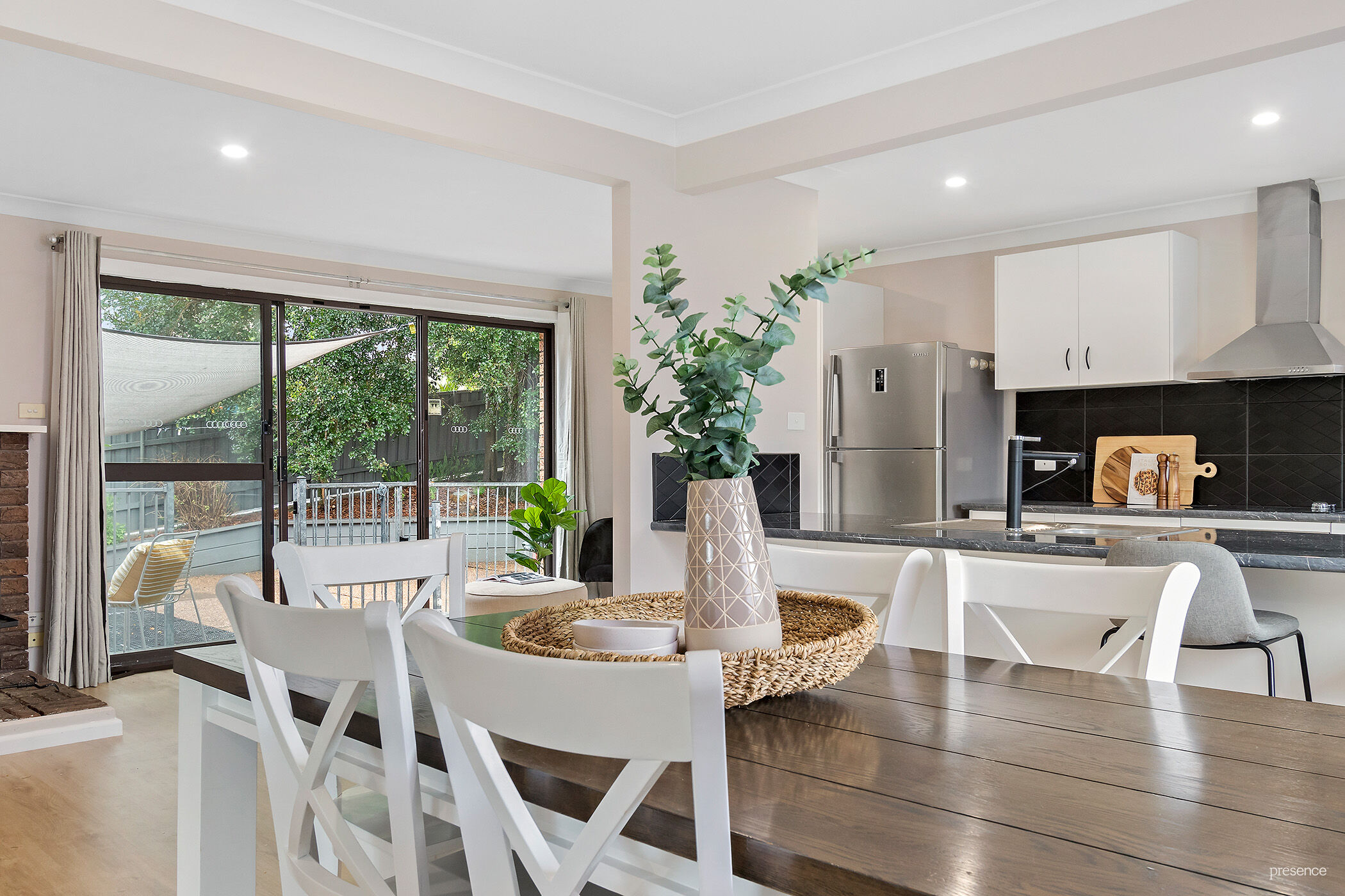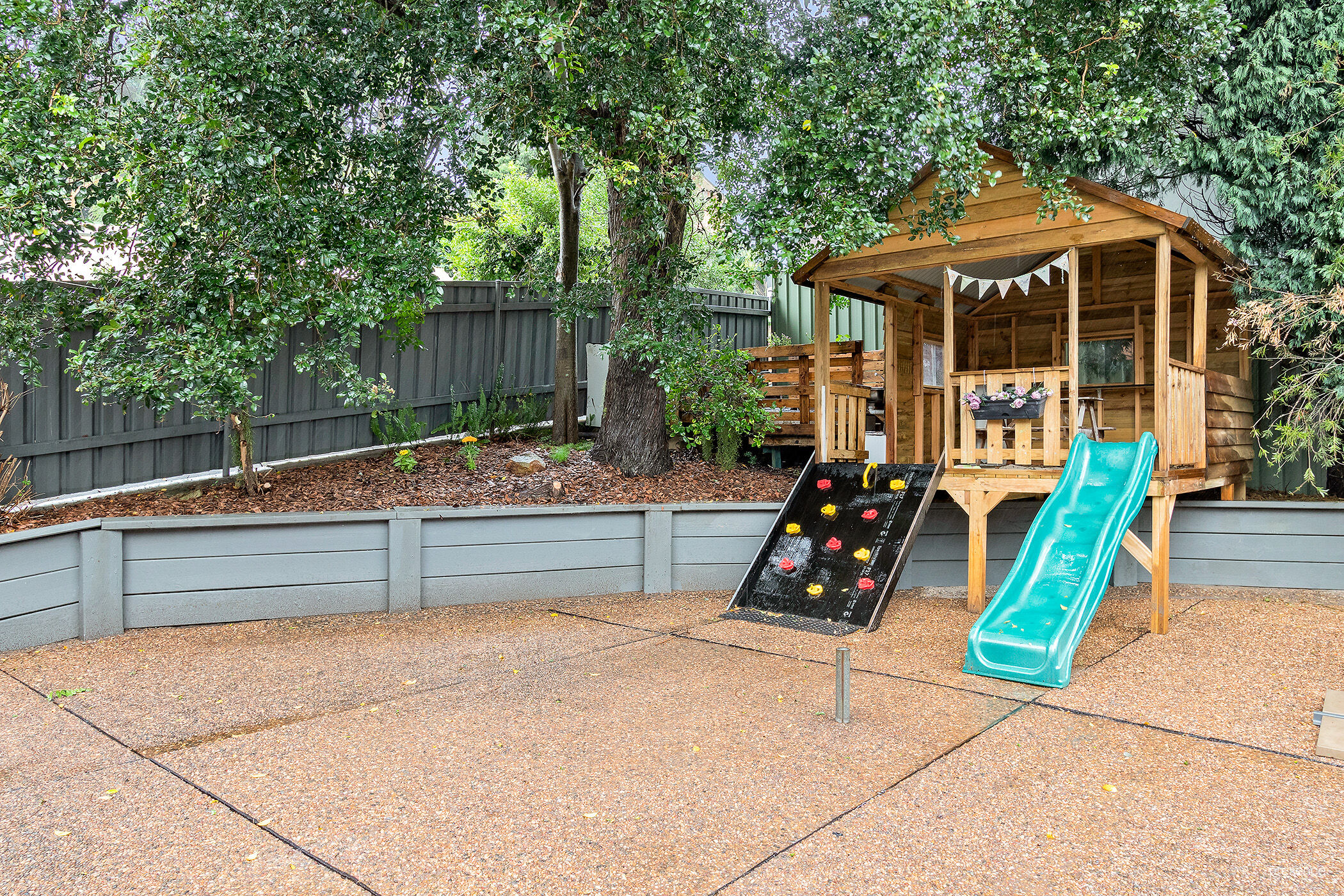 The light filled, open plan living space upstairs is highlighted by floating flooring and sliding door access to the front-facing deck which offers an elevated view of the nature-rich surrounds. The large, u-shaped kitchen features plentiful bench and storage space as well as views of the backyard so you can always see the kids playing in the fully fenced play area, complete with impressive timber cubby house. Of the three bedrooms, two offer built-ins and ceiling fans while the master enjoys built-ins and reverse cycle air-conditioning. Downstairs is self-contained with a single large bedroom, expansive office space, modern bathroom with double shower, kitchenette and integrated laundry. Off street parking is taken care of with a double garage at the front and an enclosed two-car driveway at the side with enough room to park a boat or caravan.