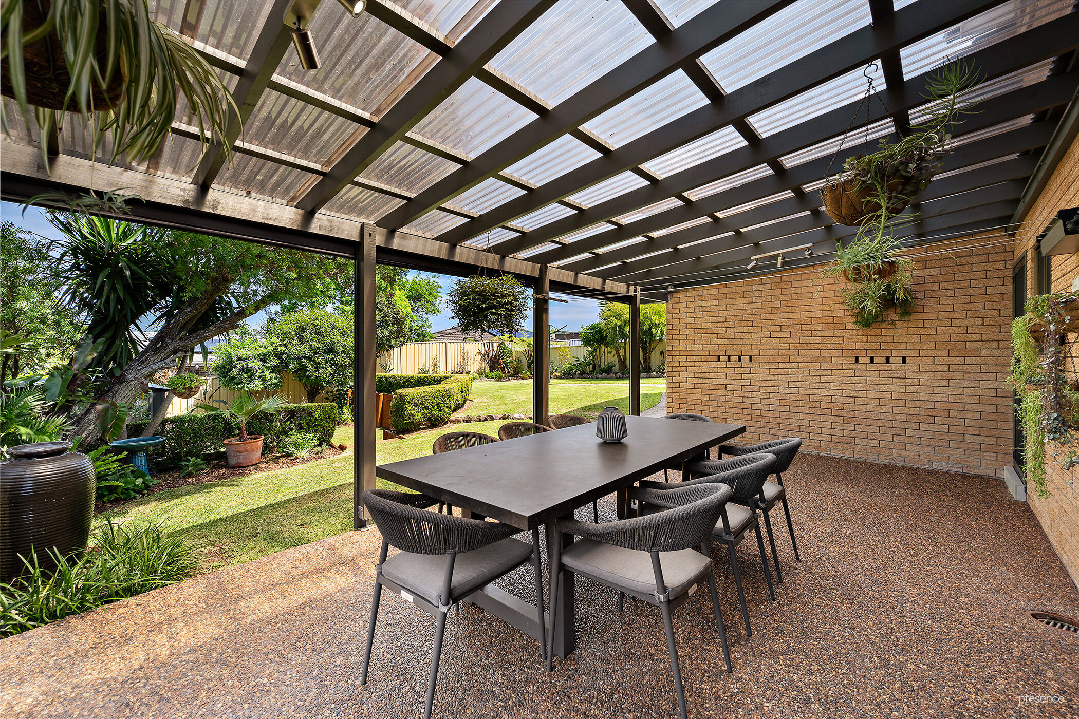 – Fantastic covered entertaining area overlooking the yard and garden shed