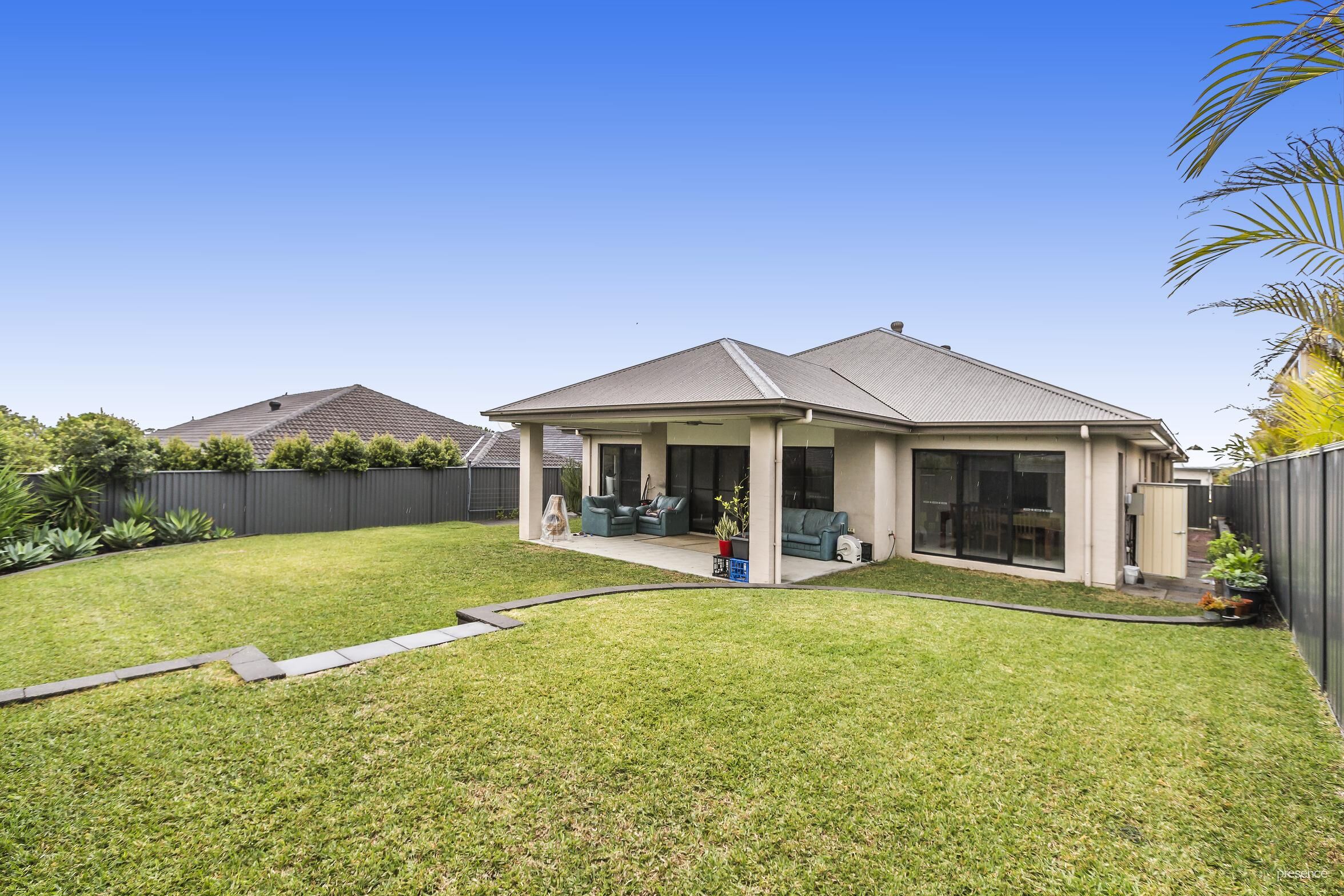 A wide entrance with polished porcelain tiled floors introduces a flowing floorplan where the signature space at the rear reveals an open plan living hub and designer gourmet kitchen. Light, bright and spacious, this inviting area connects seamlessly to the outdoors allowing you to enjoy the northerly sunshine while you relax or entertain alfresco. The inclusion of a separate home theatre and children’s activities area adds to the many inviting choices for entertaining guests and family alike. The four bedrooms, two lavish bathrooms and a separate w.c are well-zoned to ensure quiet time can by enjoyed throughout the day. Plenty of storage, a clever study nook, landscaped gardens and a double garage add further appeal while, the house has a raft of modern features including multi-zoned ducted climate control, filtered water in the kitchen, fully automated reticulation system, hardy sir Walter buffalo lawn throughout the back and front yard and an outdoor speaker system in the alfresco area that links to the home theatre room.