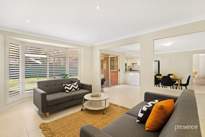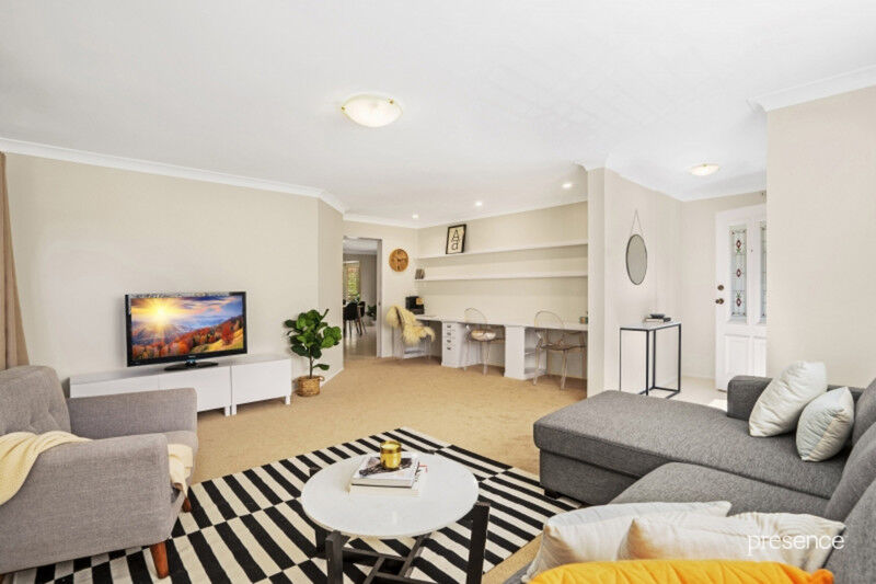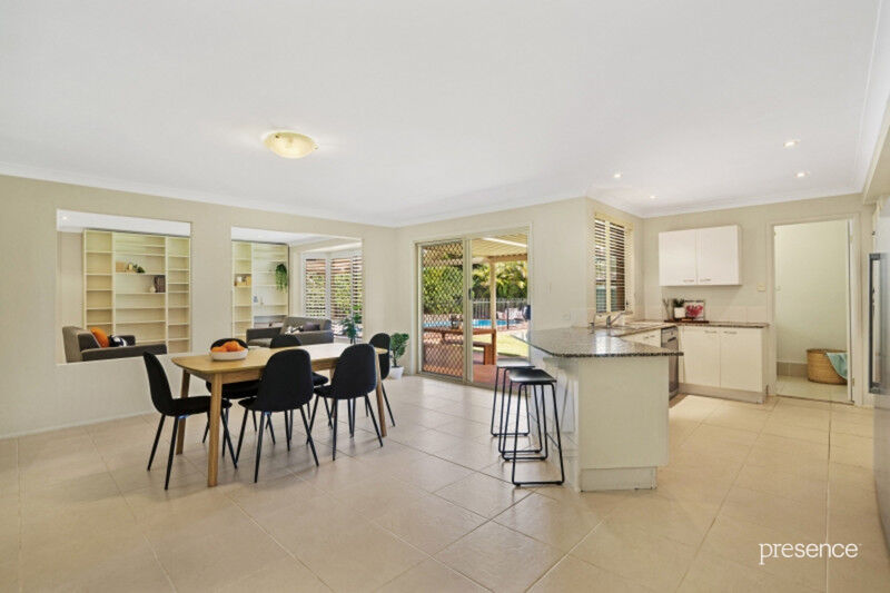 Plentiful windows, a warm, neutral colour palette and air-conditioning give this home an overwhelming sense of light and comfort. An ultra-spacious lounge room encompasses a home office before connecting to the open plan family living and dining zone and a granite-topped gas kitchen. Sliding doors open to a large all-weather alfresco, level lawns and a palm-fringed pool enabling effortless indoor and outdoor living, the perfect backdrop for family dinners and entertaining friends. Four robed bedrooms and two bathrooms rest away from the social spaces for maximum peace and privacy.