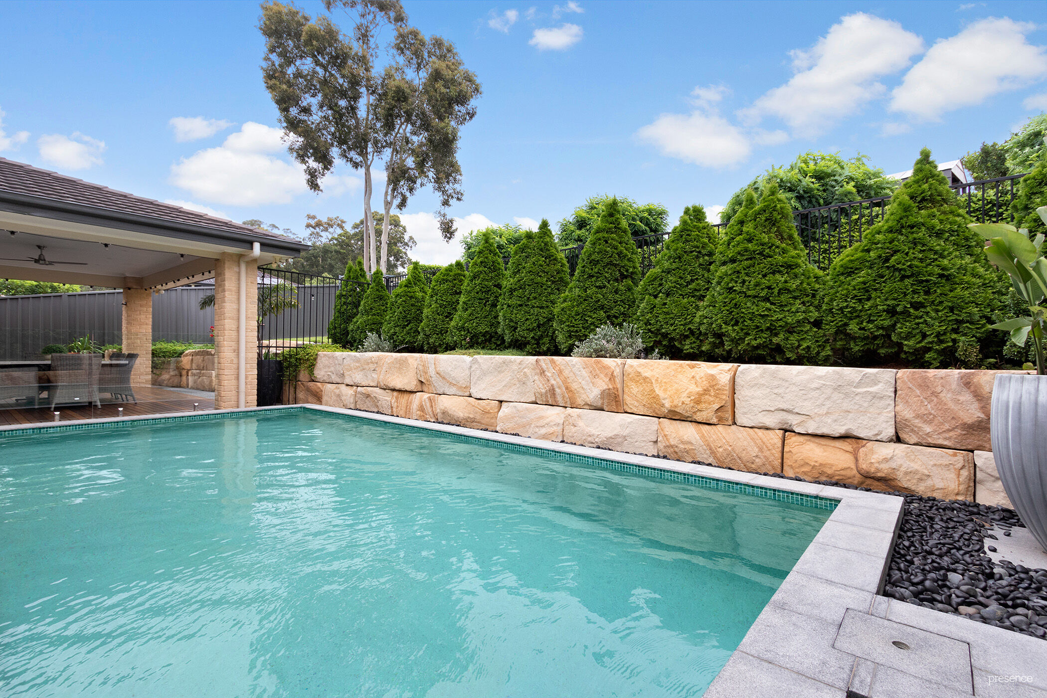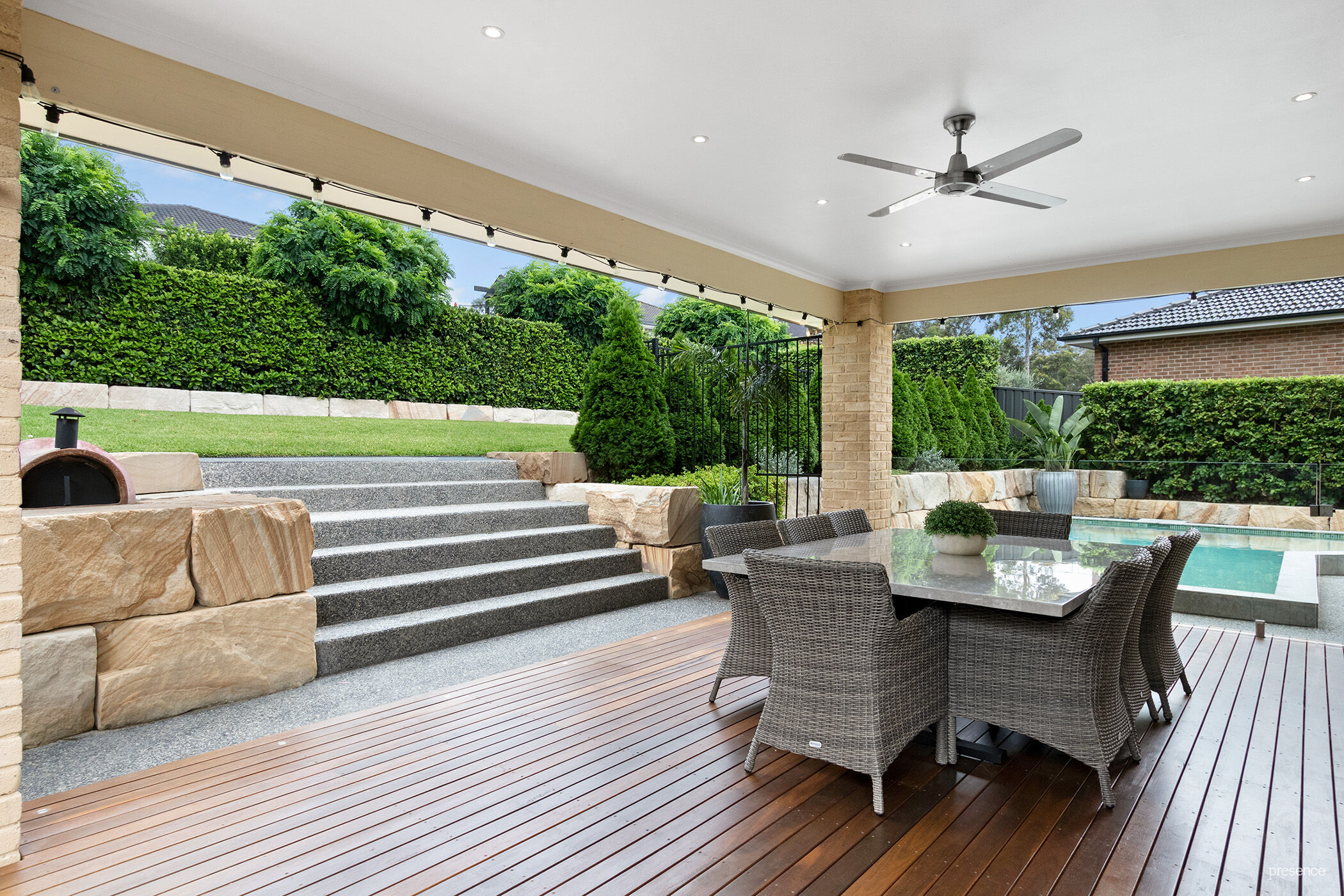 – Sparkling swimming pool adjacent to alfresco dining area