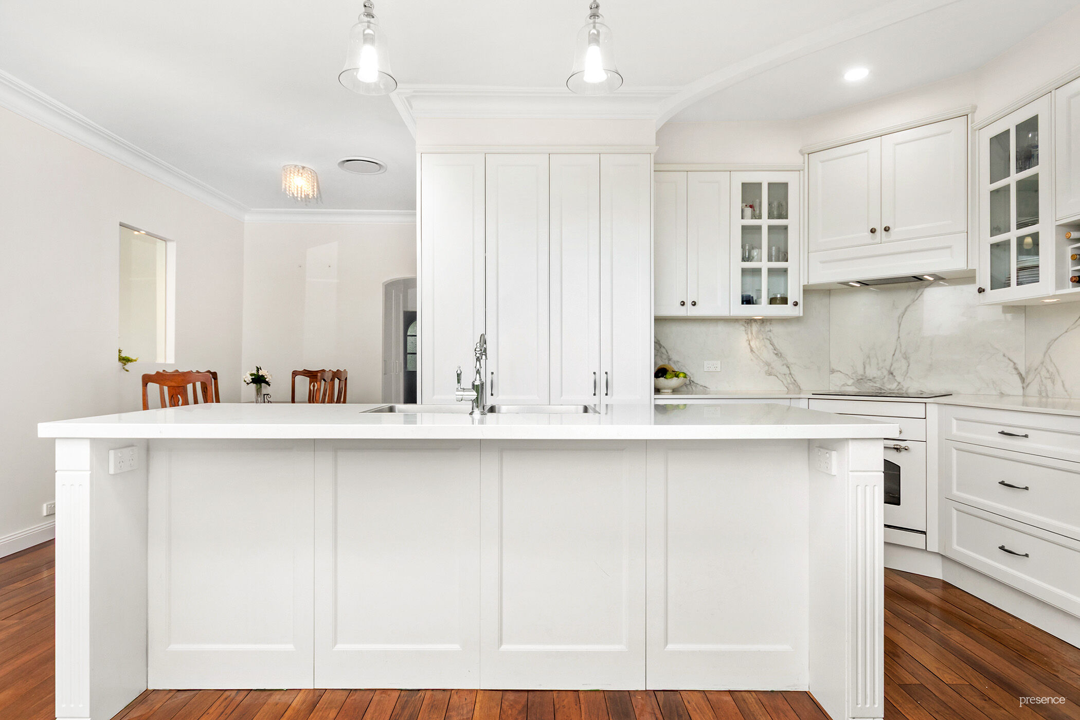 From the street you are drawn in by the soft sound of the fountain trickling away from behind manicured hedges, which offer privacy and tranquility. Likewise, the rear fountain feature is elegantly framed by a soaring star jasmine feature wall which extends over 20 metres down the entire length of the backyard, forming a fragrant backdrop that is perfect for garden parties.