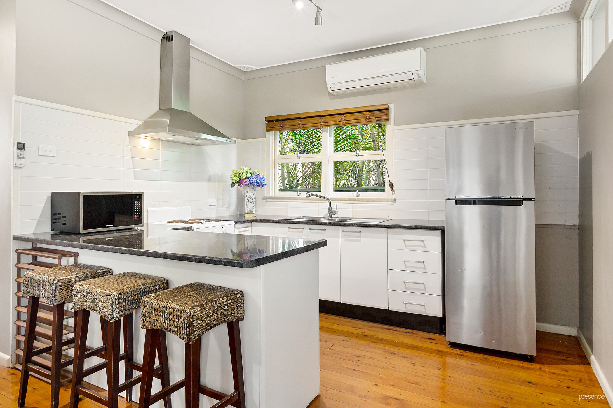 – Bright open plan living with a/c, timber floors and French door access to deck