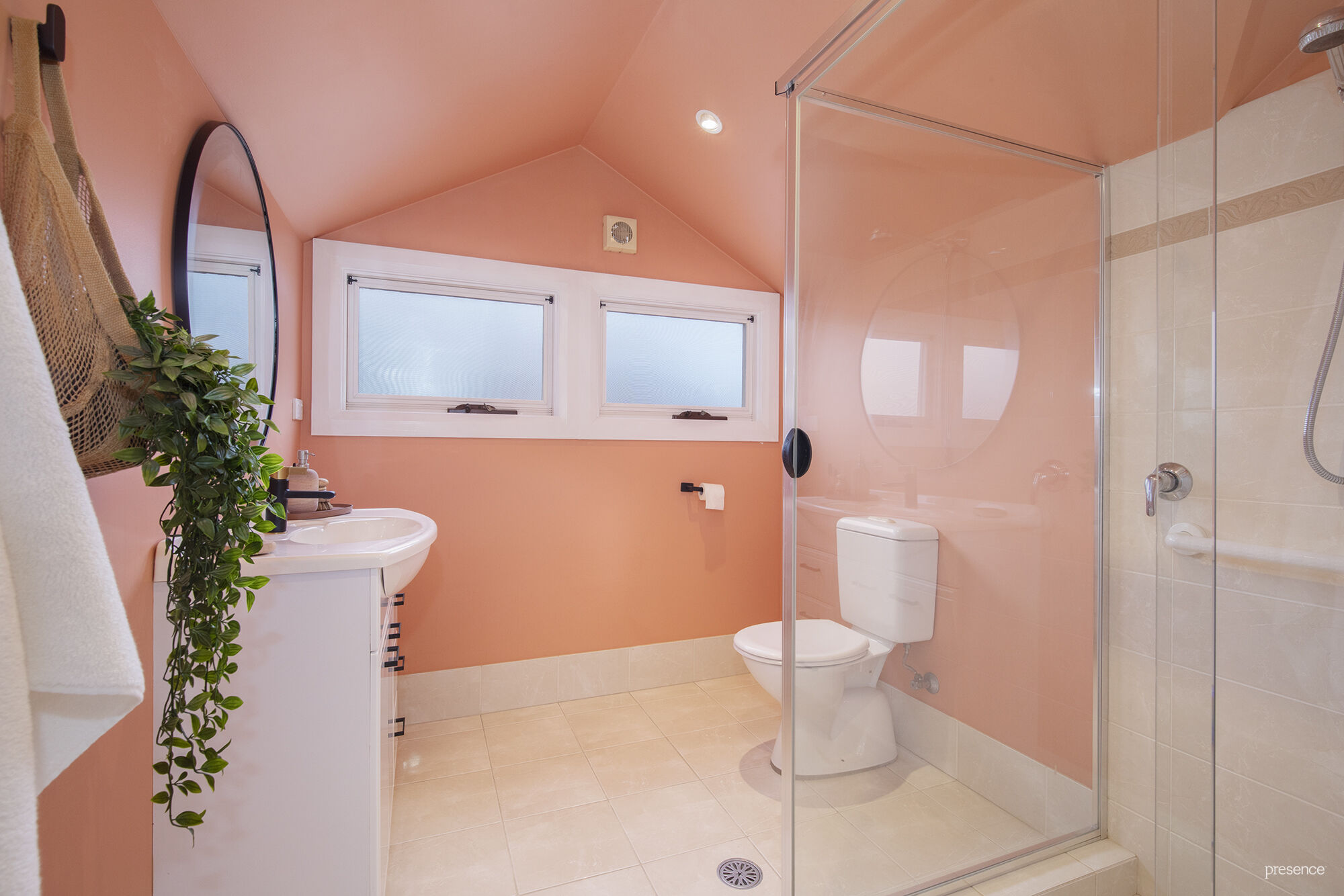 Back on the ground floor, you’ll find two generously sized bedrooms with floor-to-ceiling built-in robes. These bedrooms are conveniently adjacent to a modern bathroom with a shower over a full-sized bath, making bedtime routines easy.