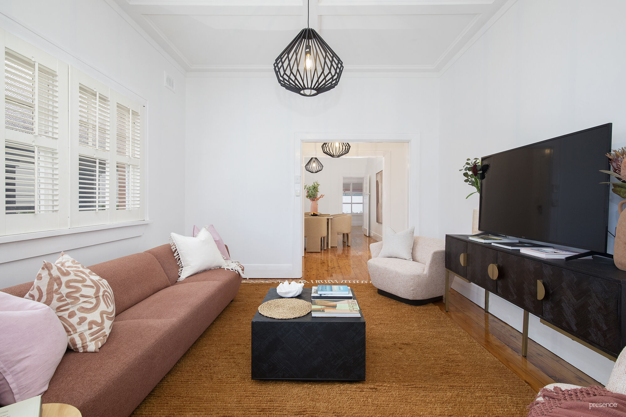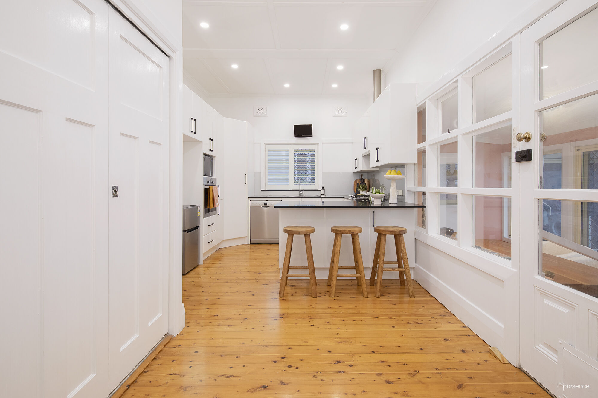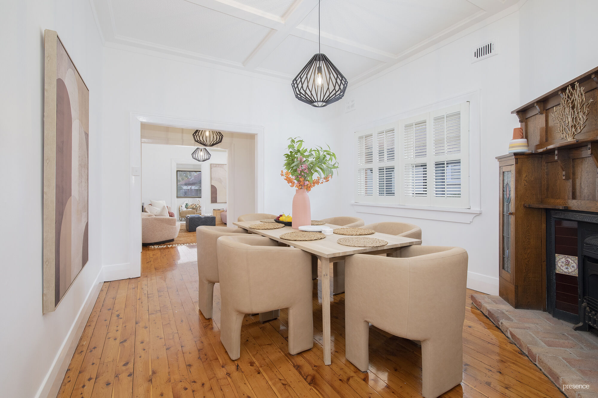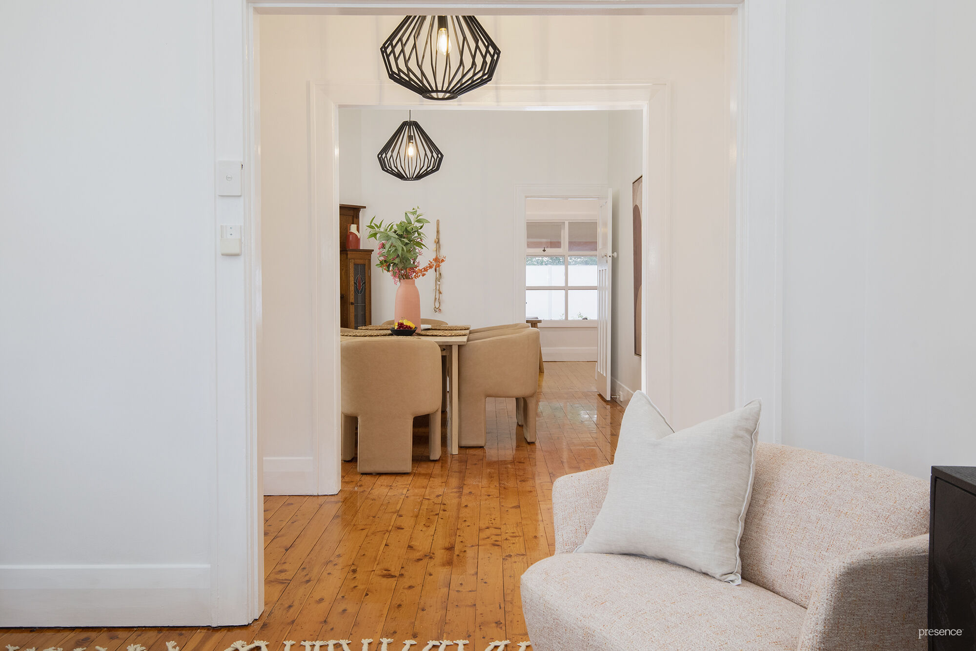 More than meets the eye at first impression, this home showcases the best of its era. Inside, soaring ceilings complement warm polished floorboards, while newly installed light fittings add layers of natural texture and warmth. These features beautifully offset the freshly painted creamy white walls and wide embossed-glass sash windows fitted with plantation shutters, allowing light to enhance the feeling of warmth and welcome.
