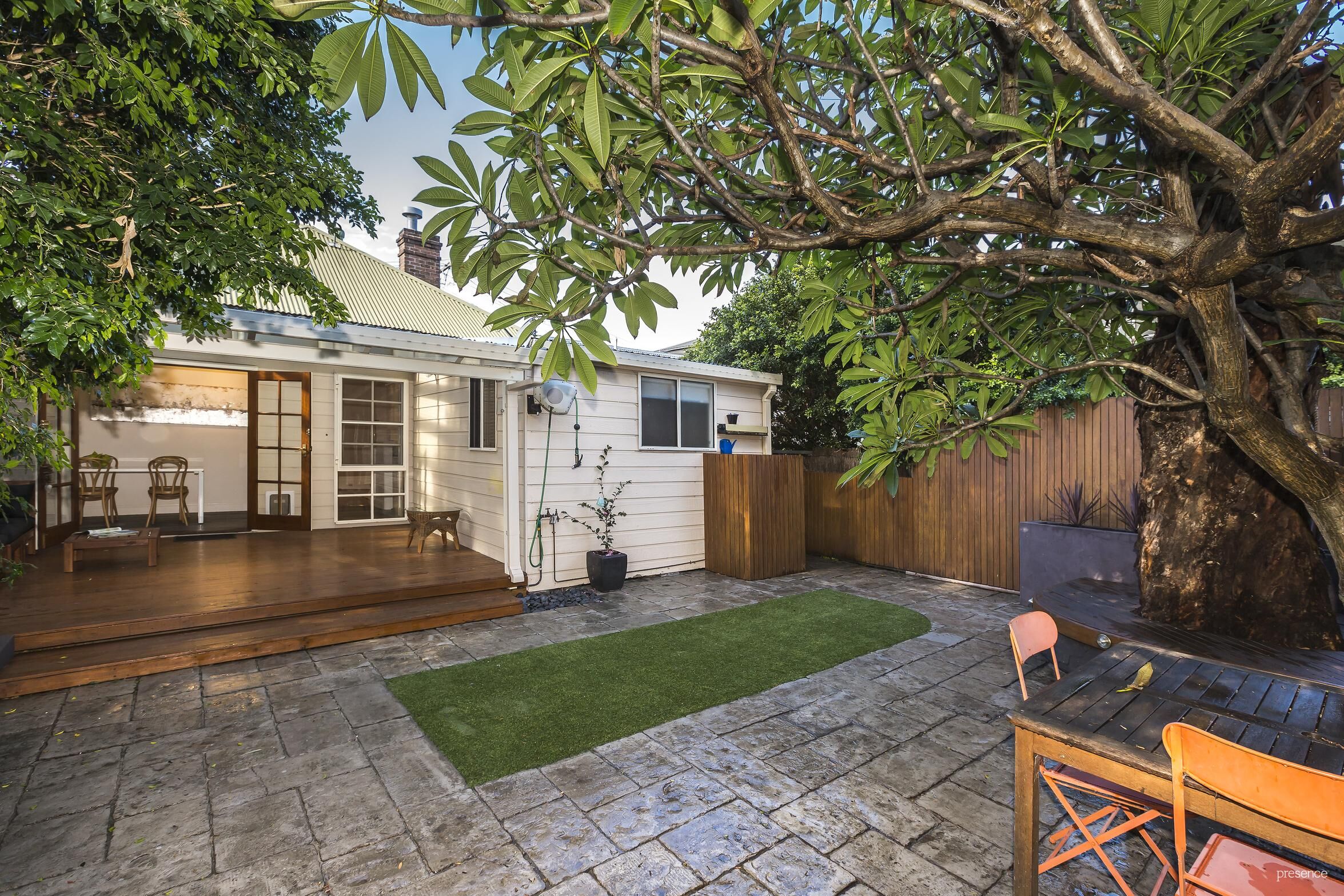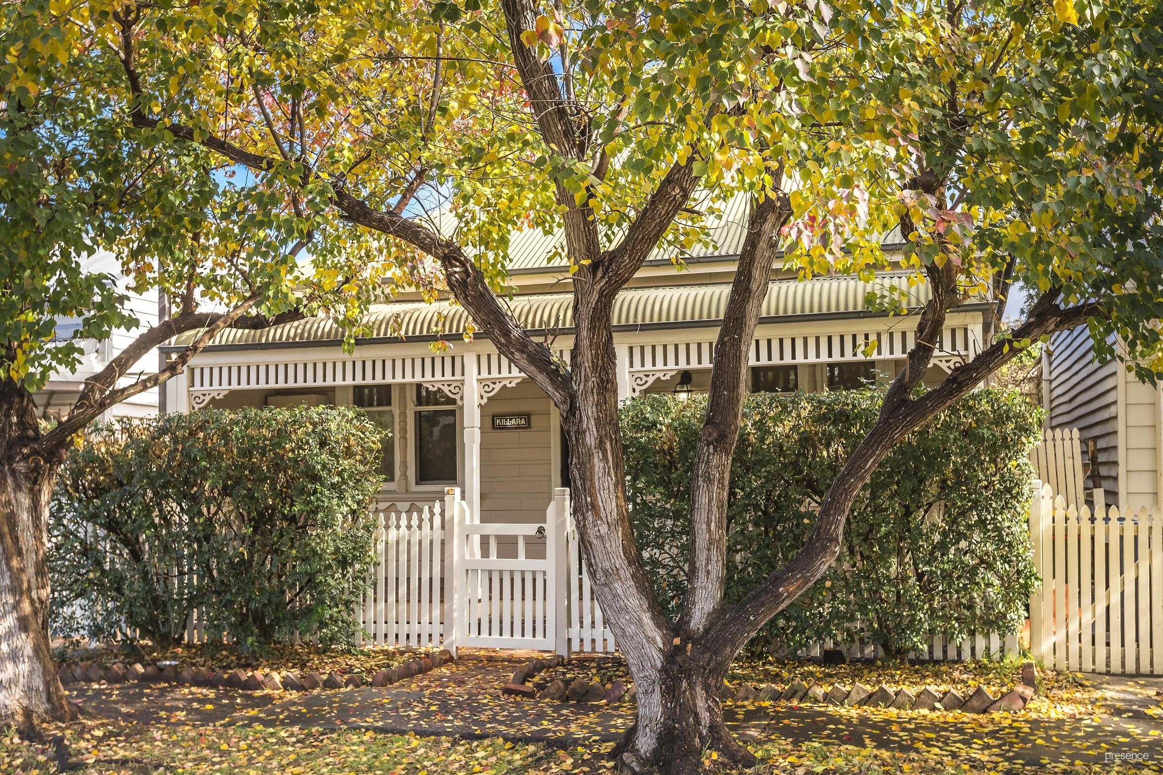 Instantly engaging with its white picket fence and traditional bullnose verandah, this gorgeous double fronted weatherboard home, known as ‘Killara’, delights with its ideal blend of character elements and modern updates. Step out back where a sense of serenity is immediately felt with an all-weather deck and paved court-garden, shaded under the umbrella of a frangipani tree, undeniably one of this home’s star attractions.