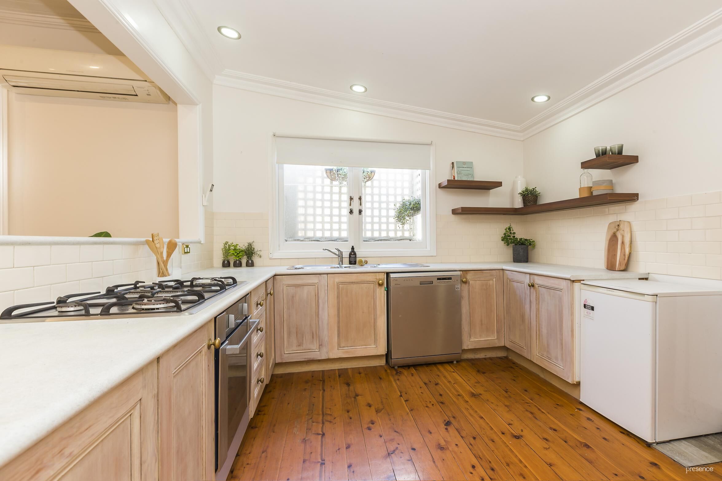 – Lime-washed gas timber kitchen appointed with dishwasher