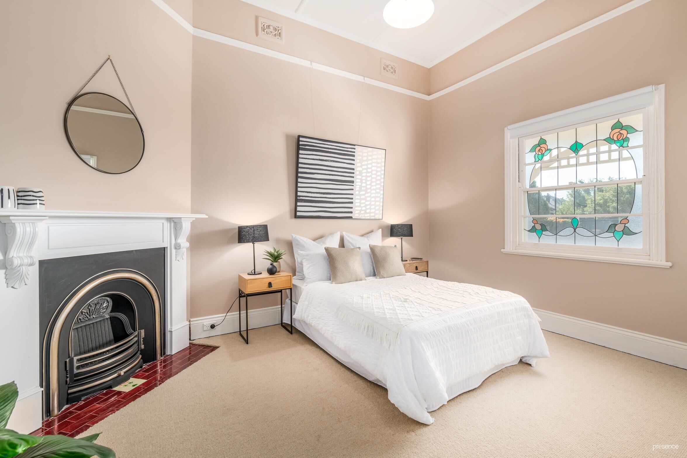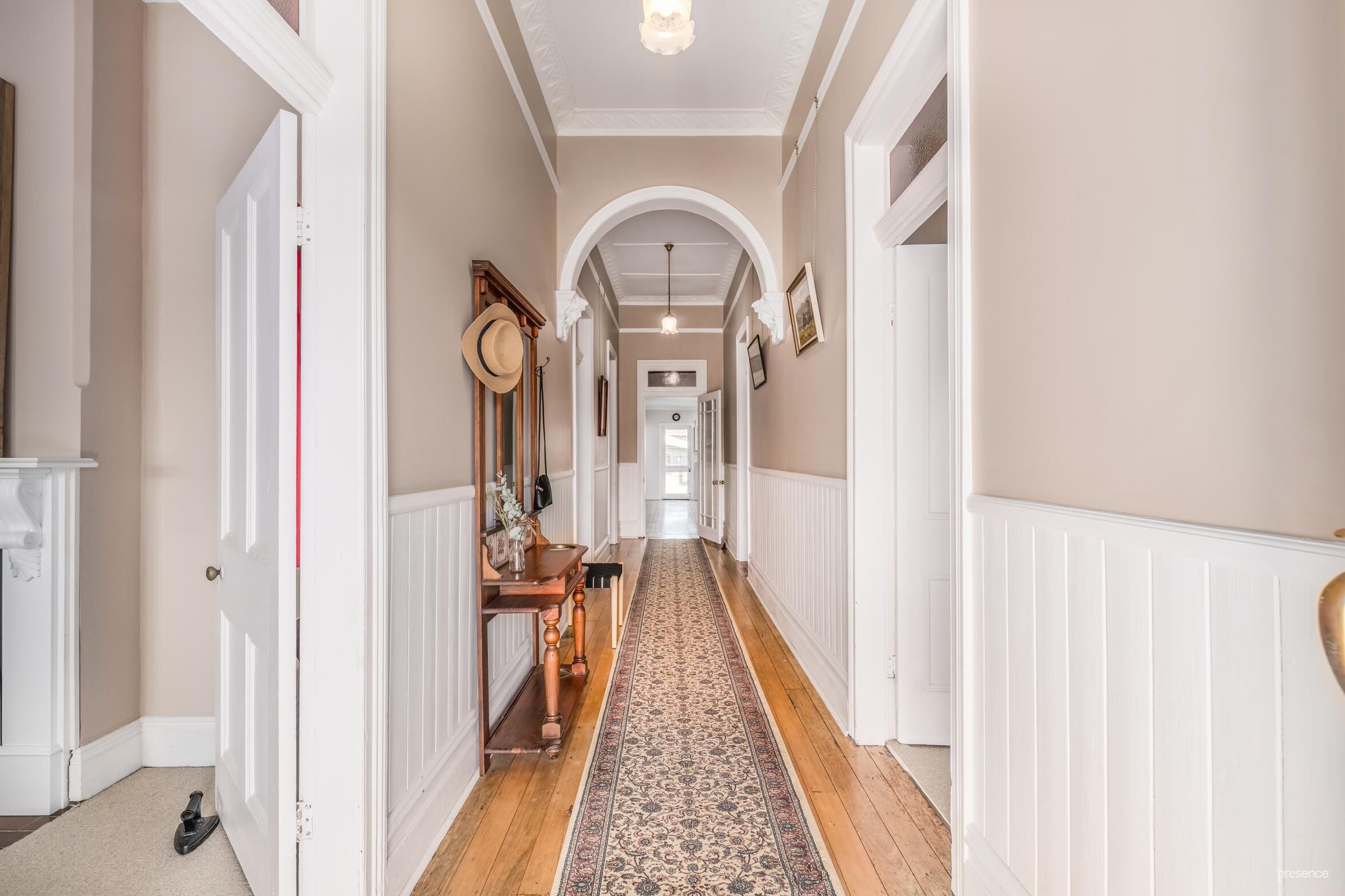 – Timber floors, picture rails, dado boards, corbelled hallway arches and fireplaces add character and charm