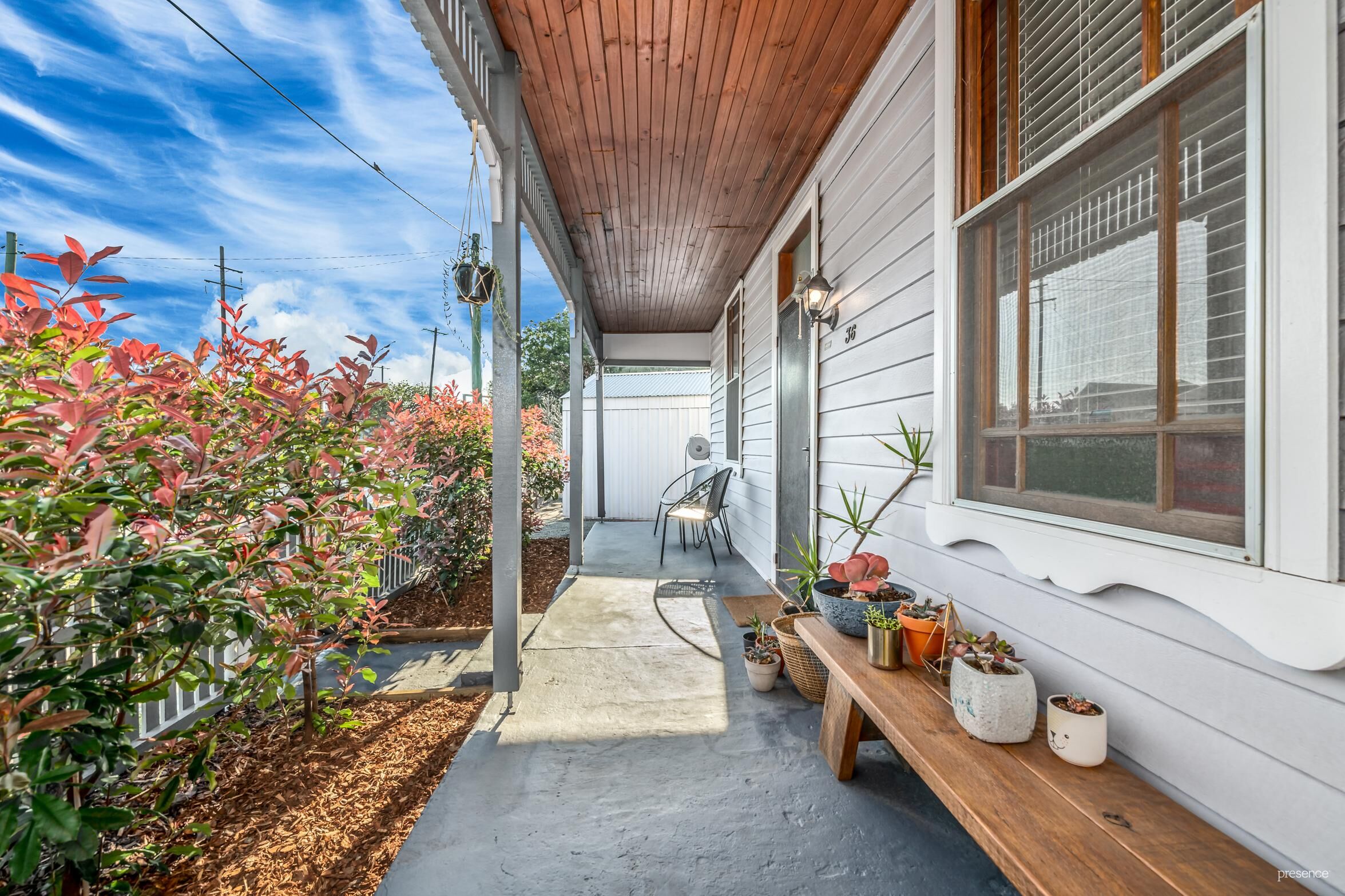 A picket fence, new concrete driveway and sun-splashed front verandah welcomes you inside to a canvas of timber floors, high ceilings and a warm, neutral colour palette. There is air-conditioning to keep things comfortable, an eye-catching tile selection in the bathroom, along with a relaxing bath tub and separate shower, and a breakfast bar for casual dining. French doors open from the living area to the rear deck where you can relax or entertain with the northerly sun on your face.