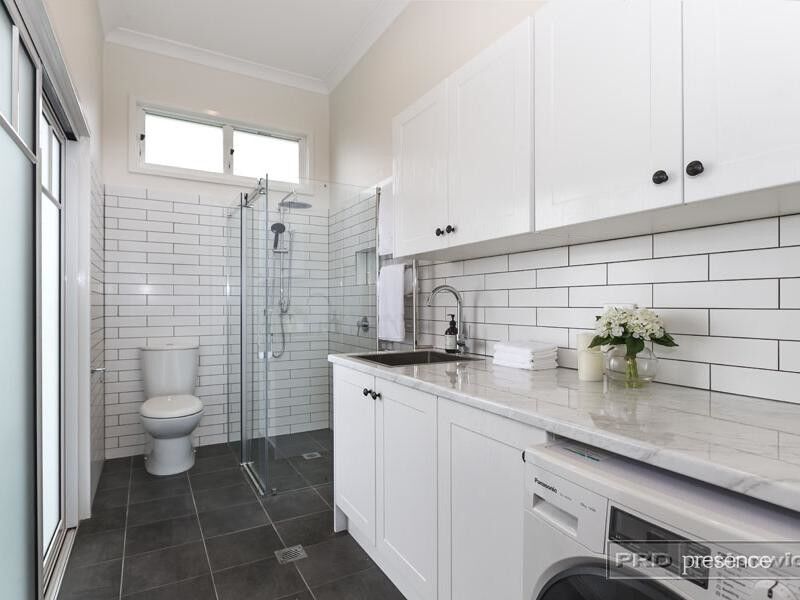 – Laundry with second shower and w/c in on-trend black and white scheme