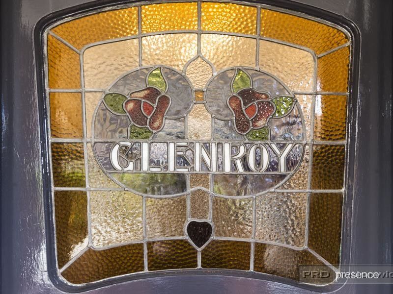 – The original coloured leadlight front door, decorated with roses and a heart , bears the name Glenroy, a nod to the Scottish heritage of the home’s original owner