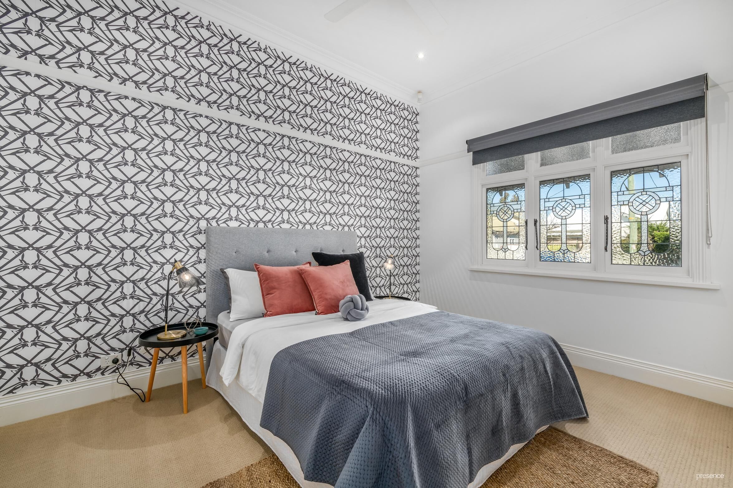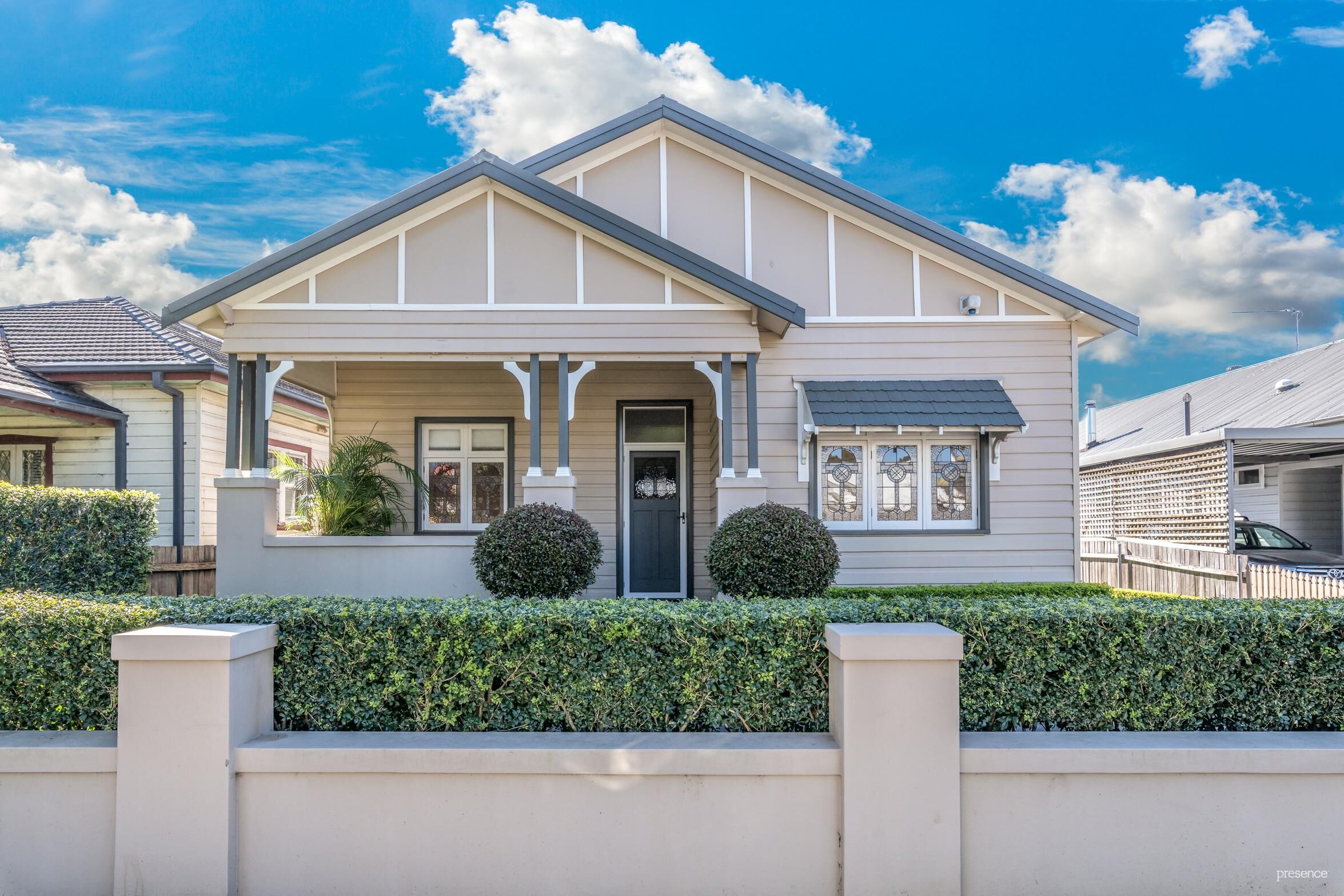 Detail is king in this delightful home, where each room has been crafted with care and attention. Retained period detail includes beautiful timber floors, leadlight windows, picture rails and 3.2metre ceilings while striking designer wallpaper provides a touch of drama, ensuring this bungalow always stands out from the crowd. A granite-topped island kitchen features a two-toned colour palette with gas appliances, an amazing amount of cupboard space, wine rack and study nook. The functional layout separates social spaces from sleeping quarters with three bedrooms, master with ensuite, at the front of the home preceding a formal lounge room and kitchen/dining at the rear along with the full-size family bathroom and laundry. French doors open up to allow true integration between indoors and the covered entertainer’s deck, level lawns and access to the 4-car garage, that’s set behind electric gates.