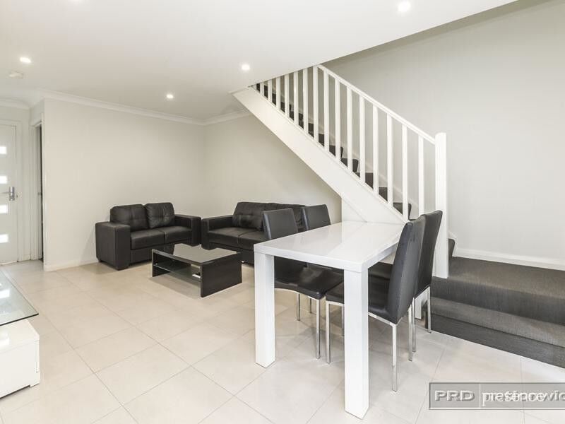 Interiors are illuminated and inviting with a crisp neutral colour palette and low maintenance tiled floors. The free-flowing living and dining domain is both spacious and private connecting to a rear courtyard. A gas cooktop and stainless-steel dishwasher ensure the kitchen has a modern feel and caters effortlessly to every day cooking. A full-size laundry includes a handy second w/c. Three robed bedrooms and the family bathroom with separate w/c share the privacy of the upper level. Completing this compelling package is reverse cycle A/C and a single garage with internal access.