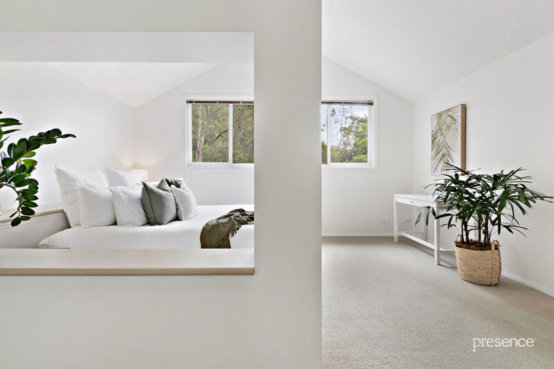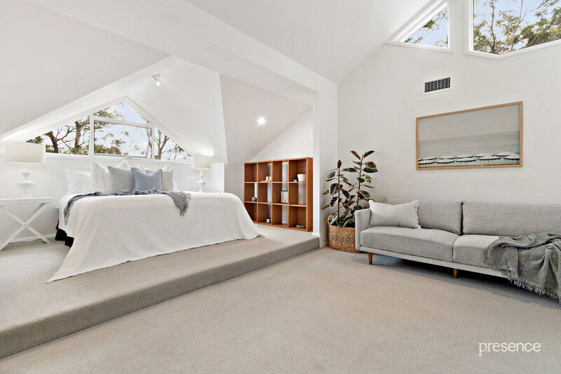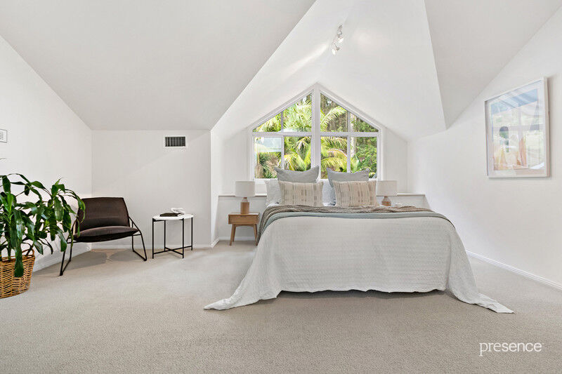 Upstairs, 3 liberally proportioned bedroom suites each have their own bathroom and an abundance of storage in combinations of walk-in robes and built-ins. A further living area is shared by these rooms, the perfect retreat to enjoy the play of light and space from the raked ceilings, wide windows, and opening skylights that let the cooling breezes waft in.