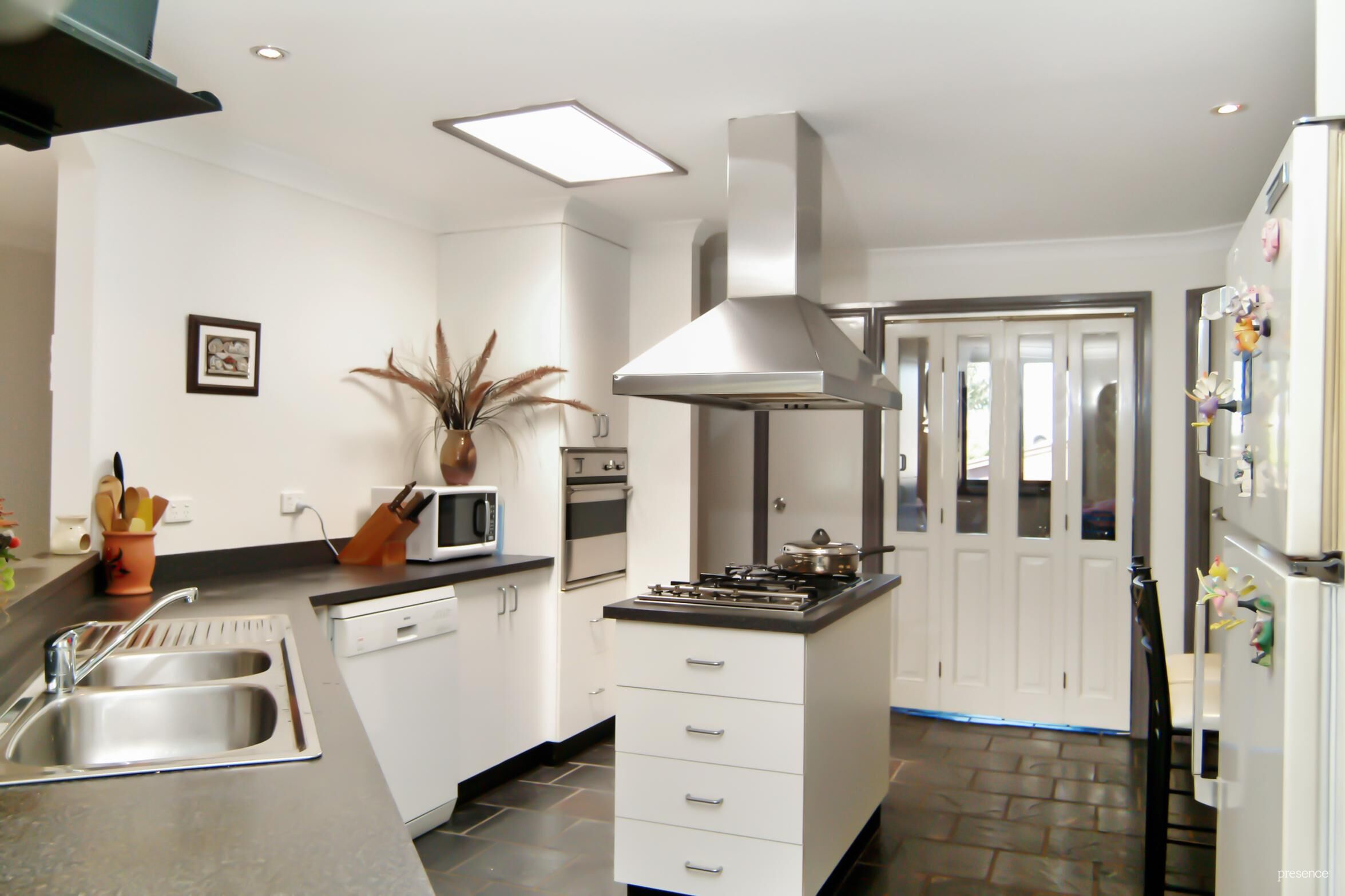 – The kitchen island bench has a Smeg stainless steel gas 5 burner cook-top fitted, a Smeg stainless steel electric multifunction wall oven and kitchen cupboards provide ample storage.