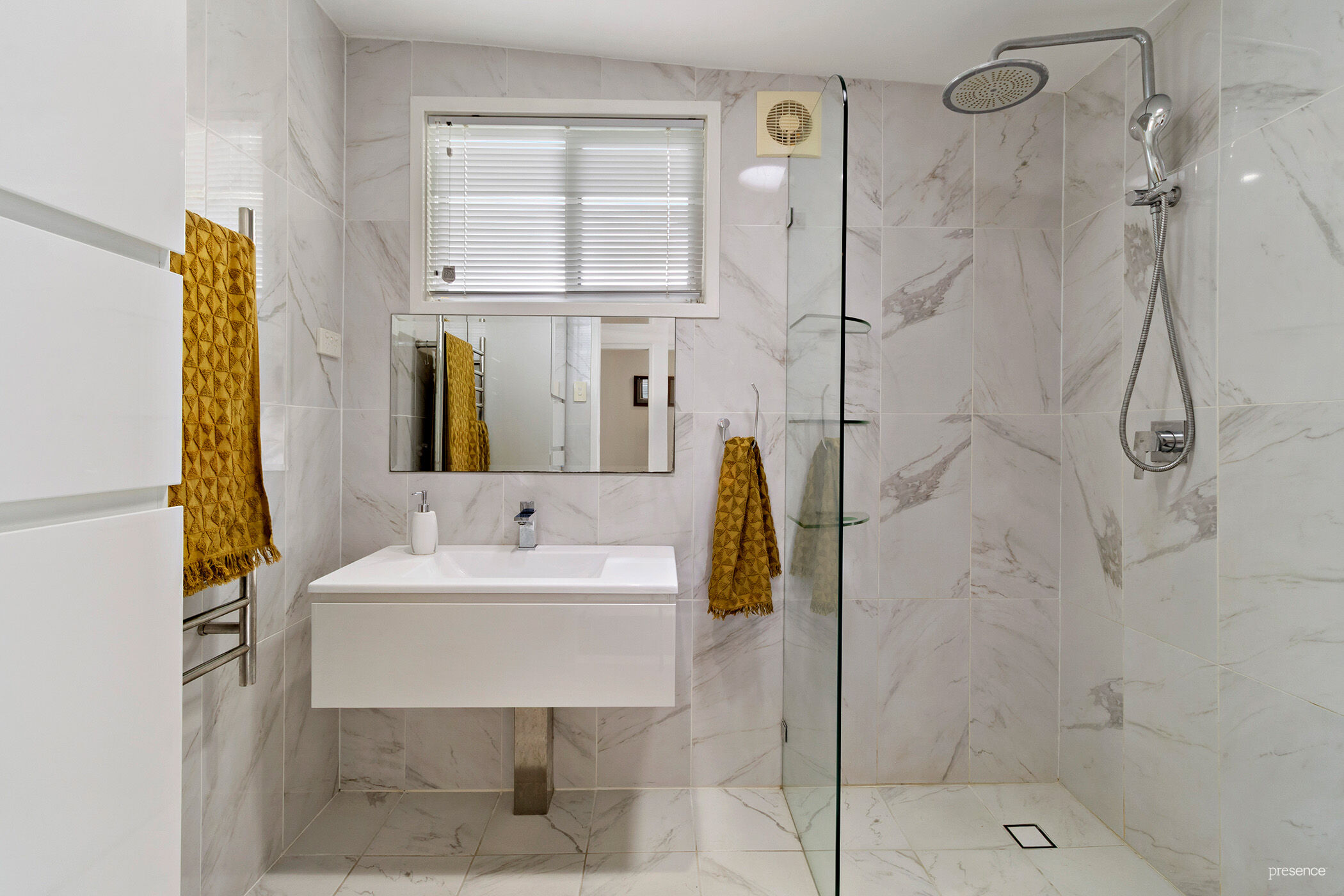 – Light-filled living areas on both levels, including a spacious open-plan living and dining room on the lower floor with floor-to-ceiling windows to enjoy the views and a striking gas fireplace; both living zones include reverse-cycle air conditioning for year-round comfort