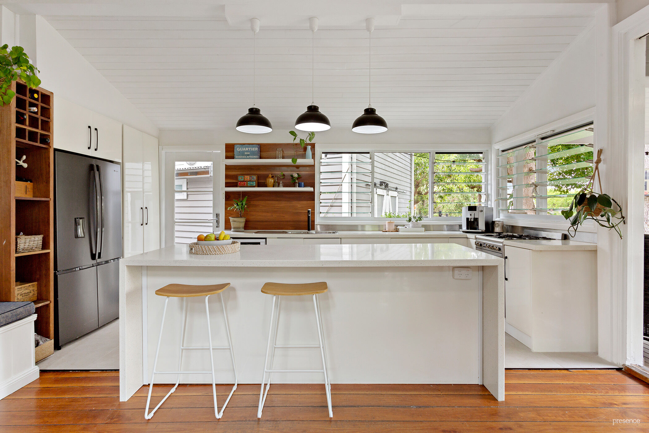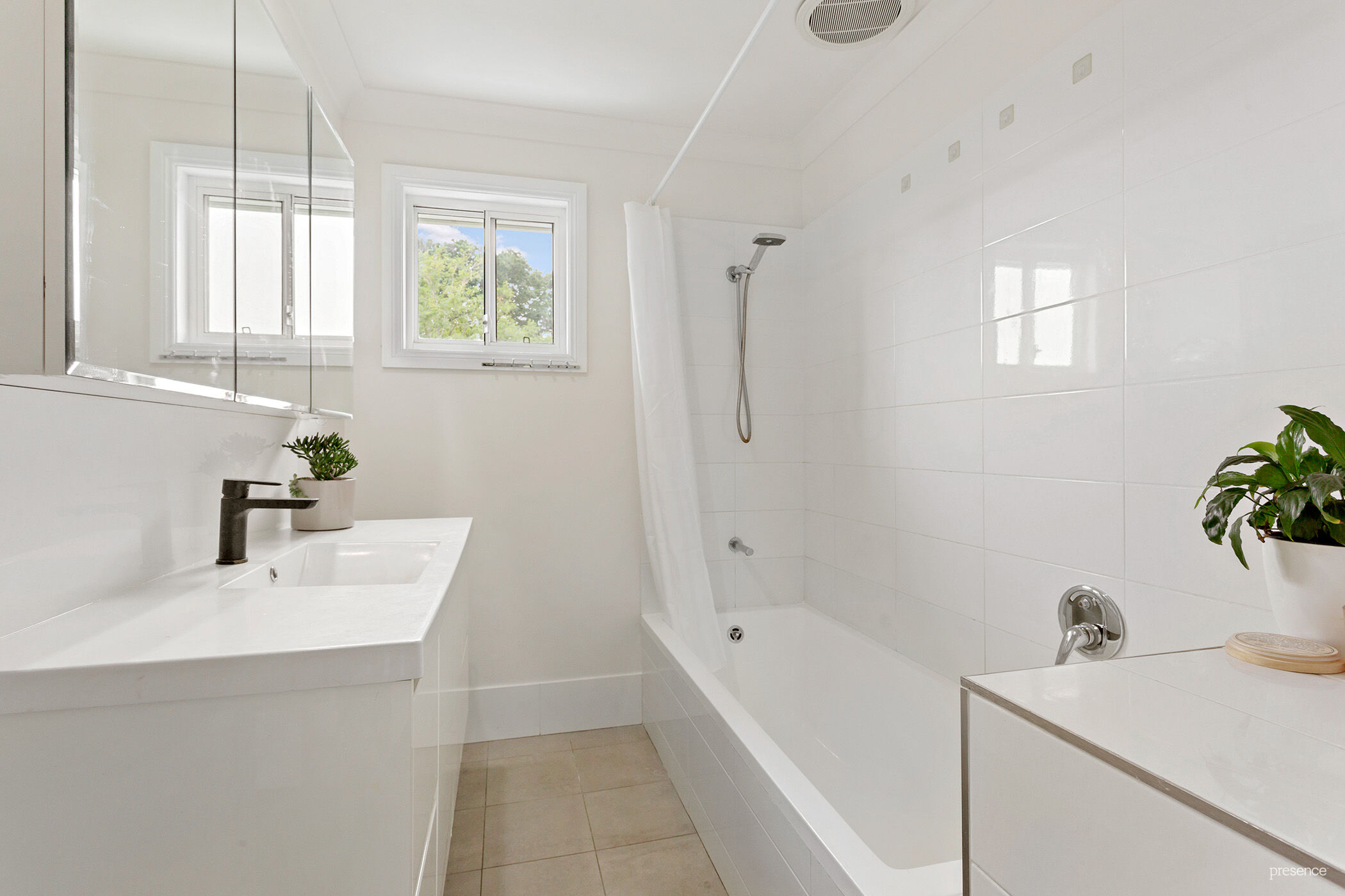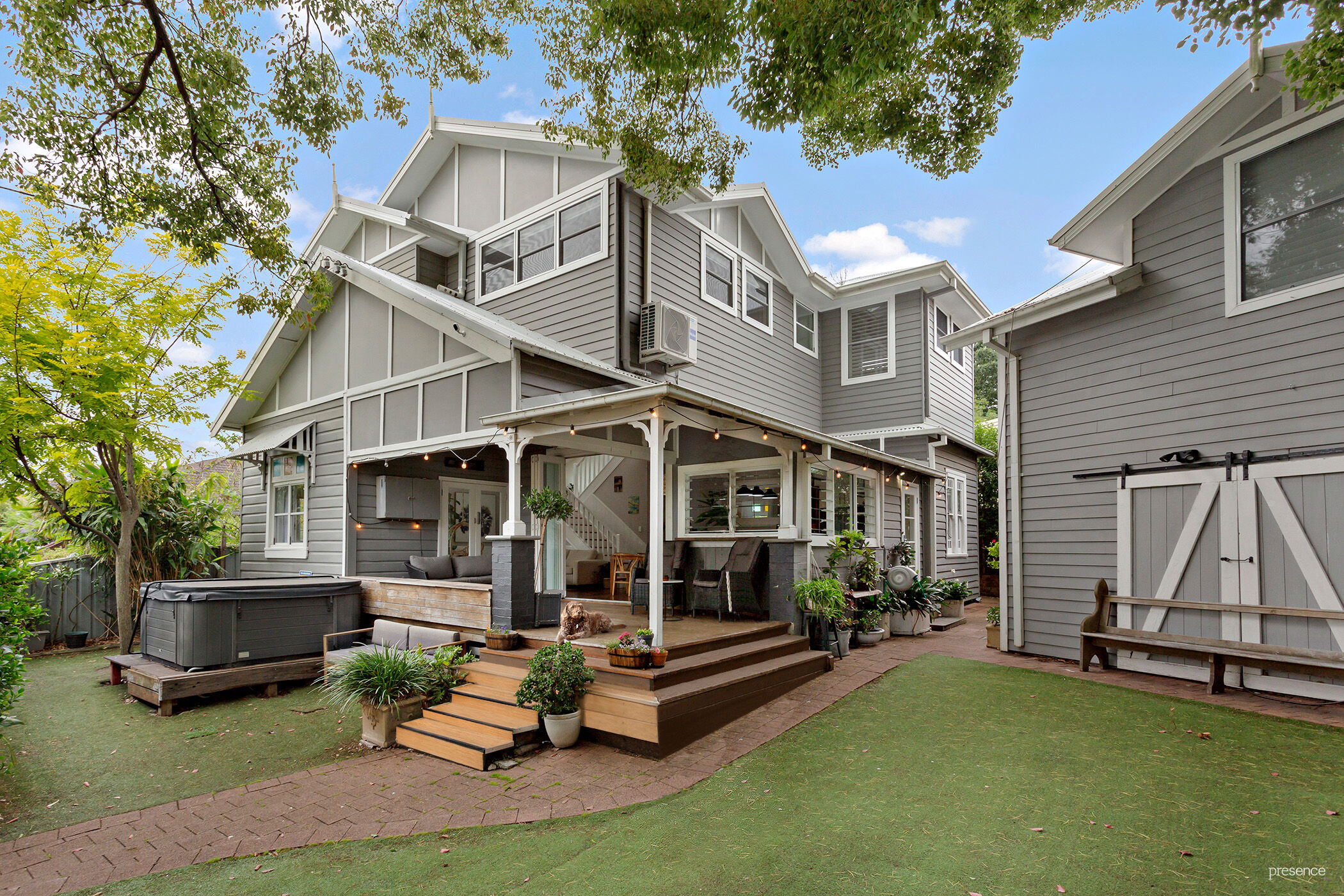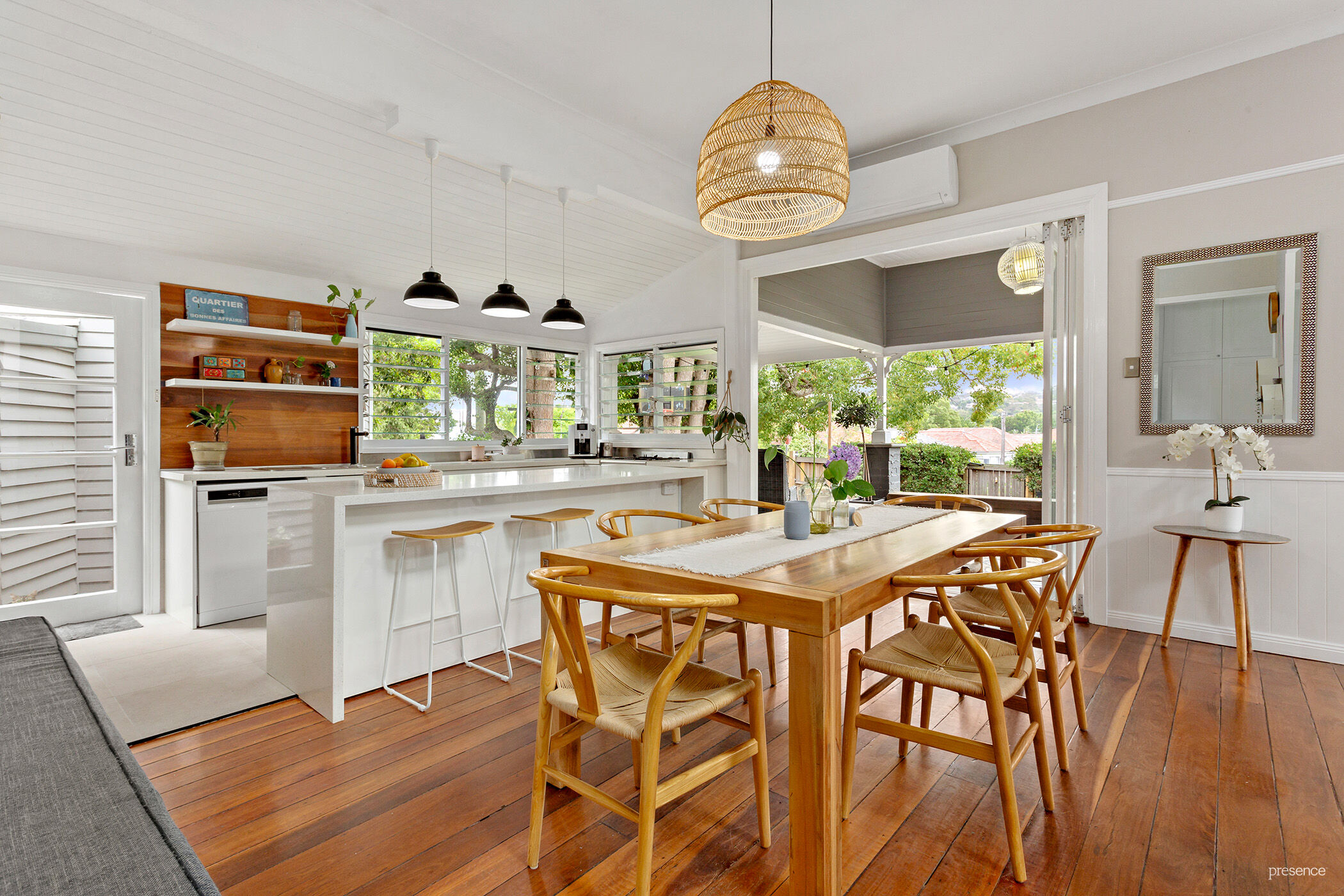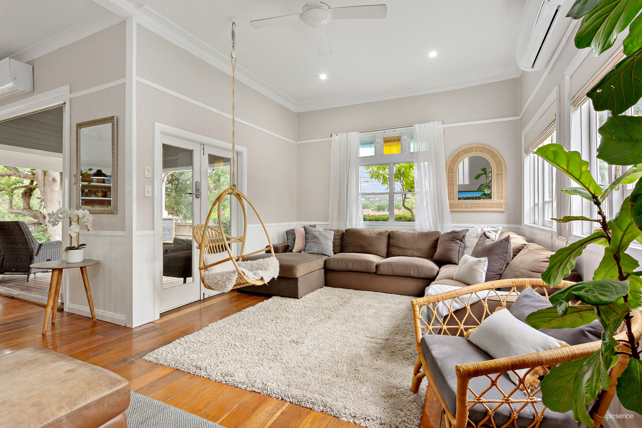 – Every detail has been carefully considered in the renovation of this exquisite Arts and Crafts style home – enhancing its character and introducing light-filled rooms with high ceilings. Dual aspect windows offer leafy vistas, along with the comfort of plantation shutters, air conditioning, and well-thought-out storage spaces.
