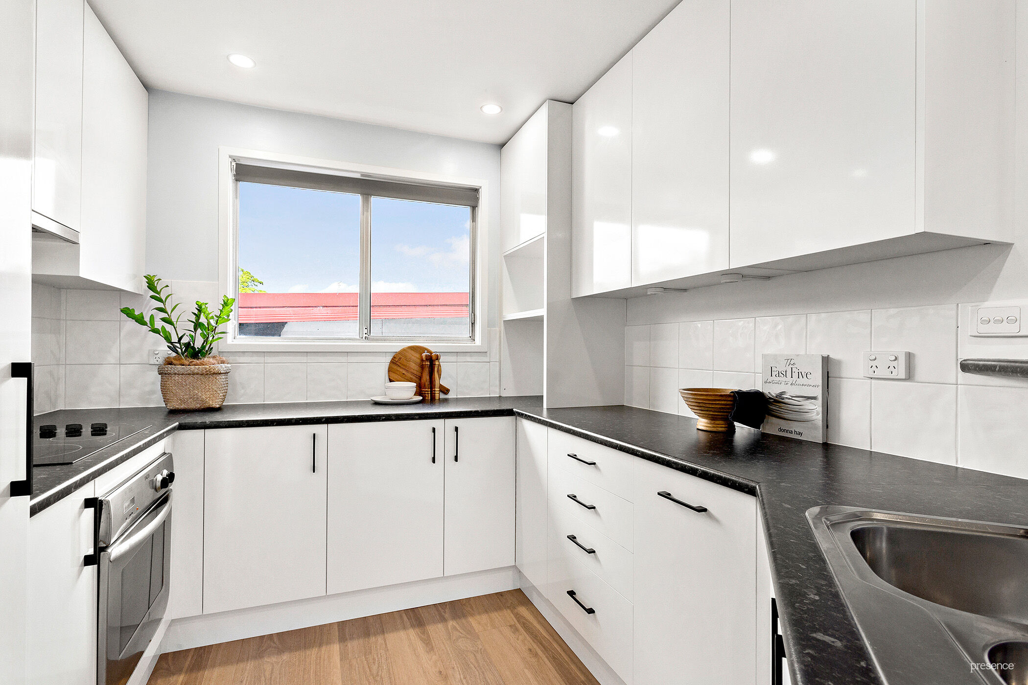 This fantastic property has been beautifully updated with honey-coloured oak-look timber flooring, crisp white interior paint and on-trend black hardware. Black finishes and fans blend beautifully with the modern monochromatic kitchen with its stylish cabinetry and view across the open plan living and dining area – surely the heart of the home. The back patio has plenty of room for hosting birthday celebrations and family functions which looks across spacious yard. Enjoy the morning sun and your first coffee on the darling front patio with its vista across the gentle hills.