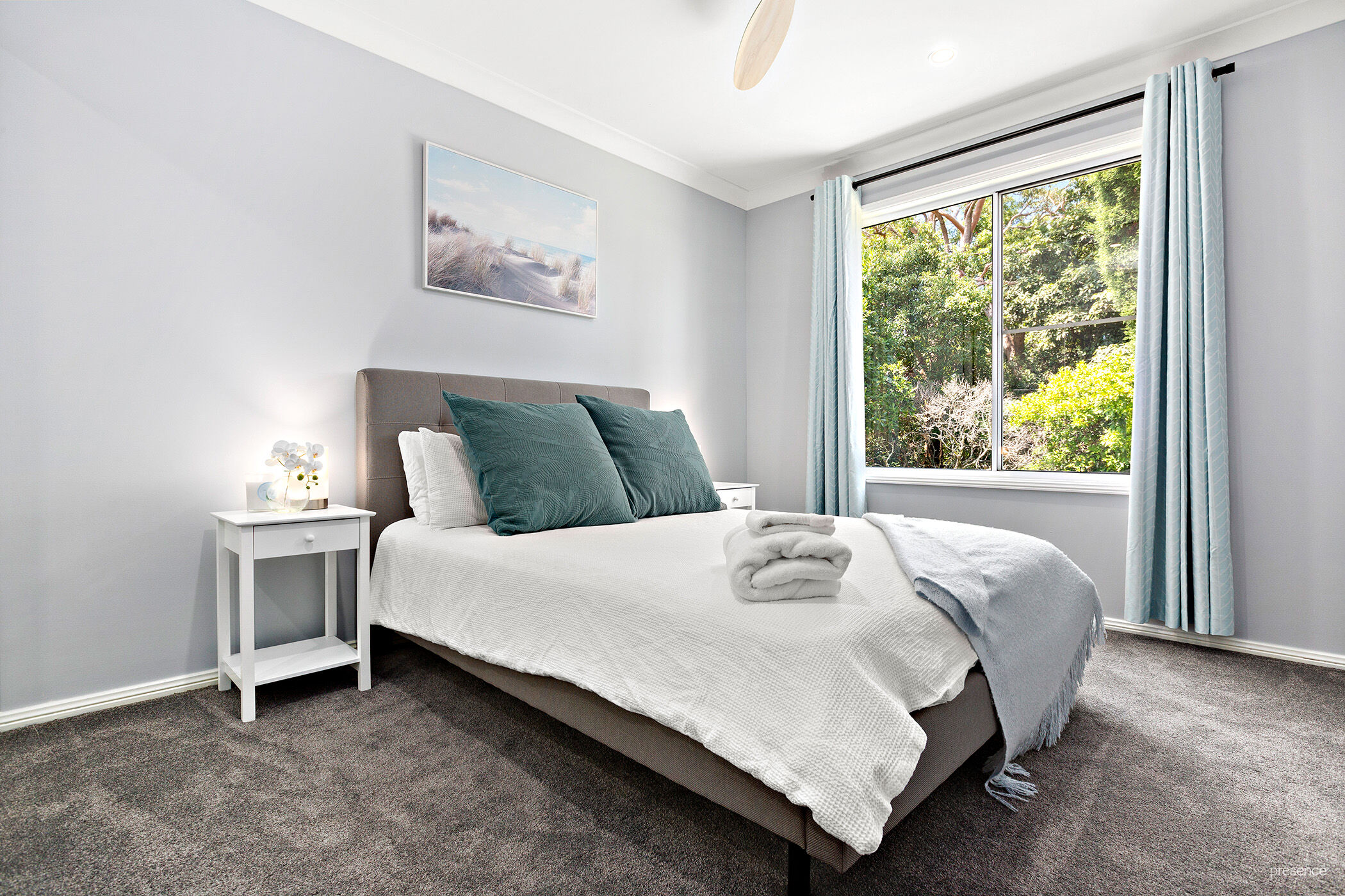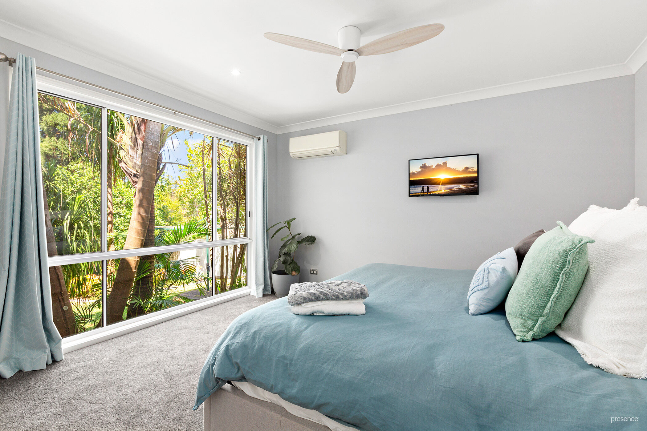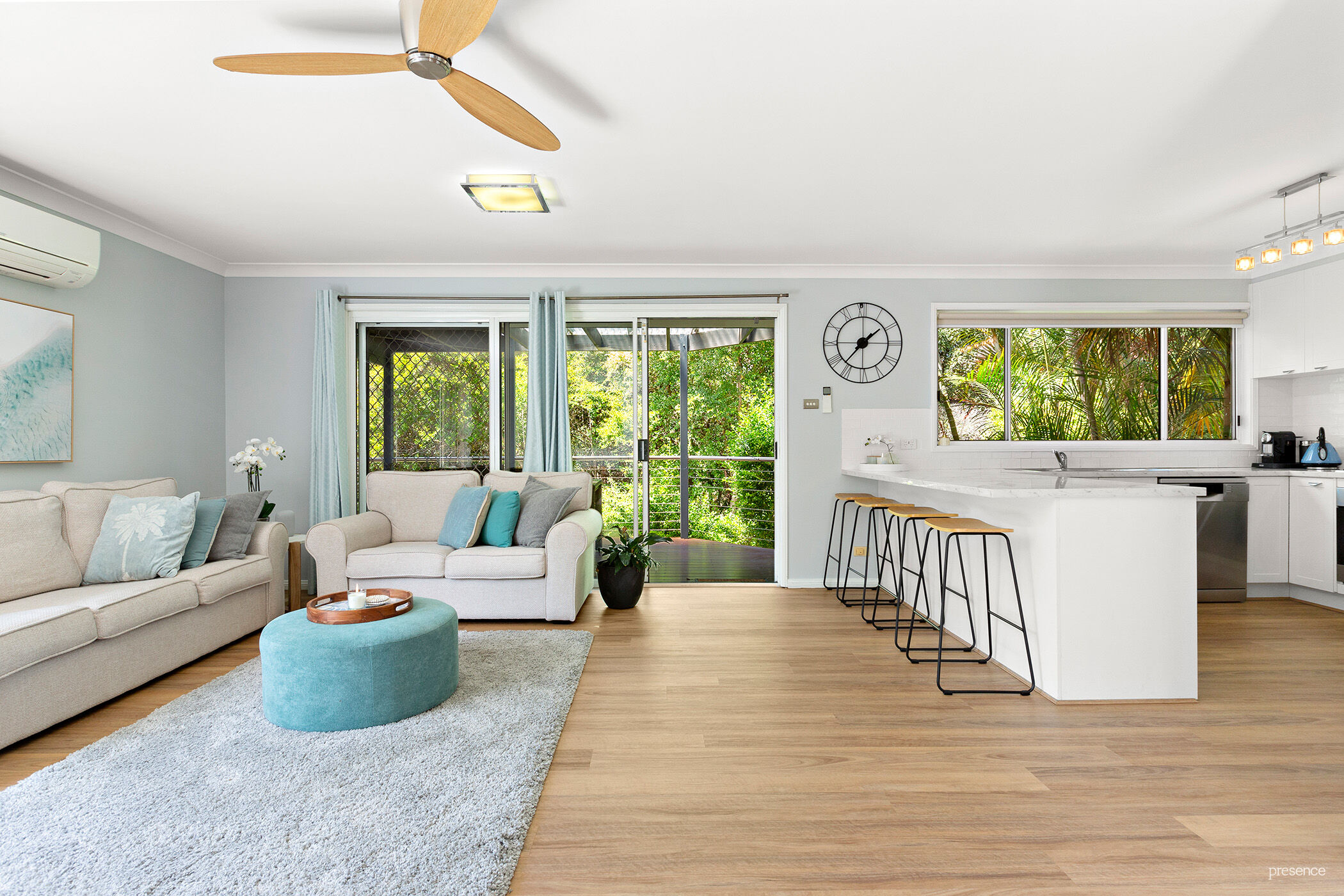 – Air conditioning in 2 bedrooms and the open living area and statement propellor style ceiling fans and subtle blinds throughout