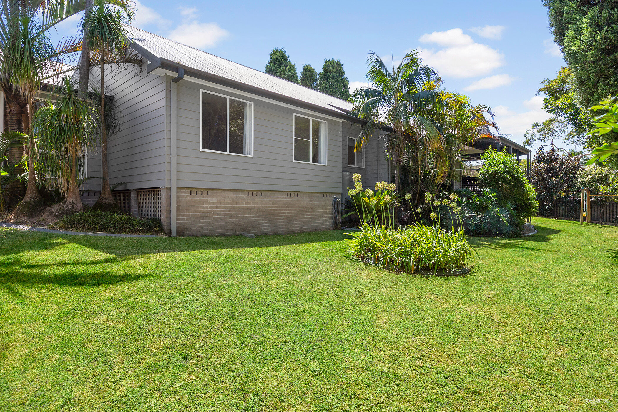 Once you have tucked the kids in bed, curl up with a book in your spacious master bedroom or catch up on your favourite show in front of the wall mounted TV in this serene space. When the weekend comes, wake to views of your tropical garden before the kids and fur babies pile into your bed to wake you with their cheeky grins and kisses. Then make a mess and a whole lot of memories flipping pancakes before you get ready to head to soccer, netball or the beach or just chill out under the huge outdoor entertaining area – the perfect spot for family birthday celebrations or weekend drinks with friends.