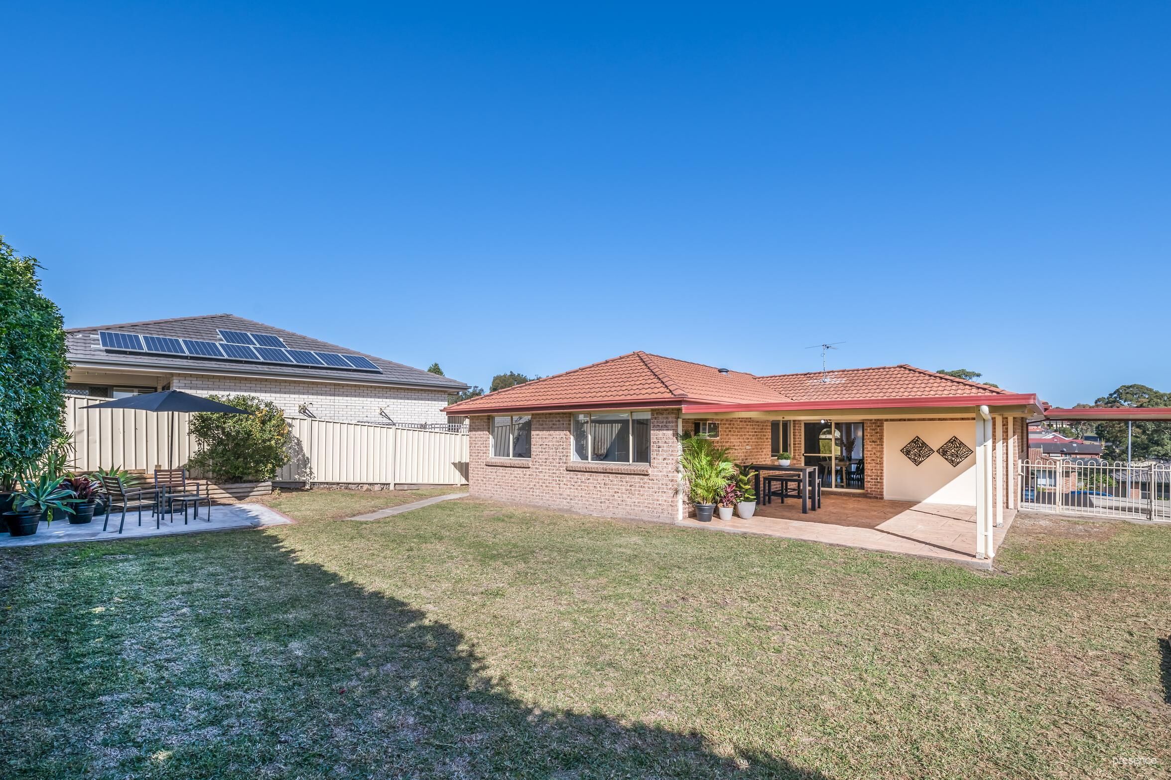 – Generously sized all-weather alfresco entertaining area and level lawns