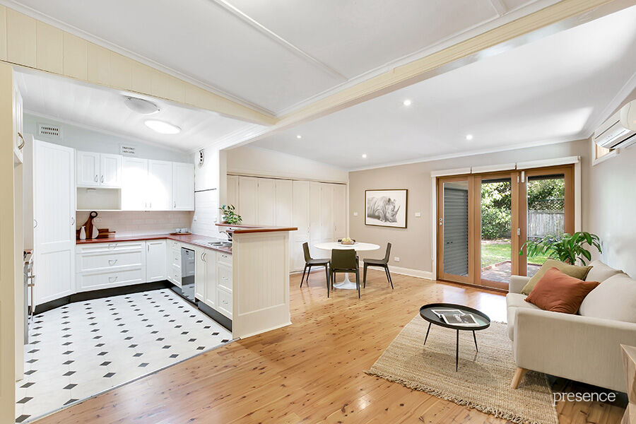Tucked behind a picket fence and high privacy hedging sits this attractive weatherboard home that’s sure to capture the eye and the heart. Timber lined ceilings, picture rails, timber floors and dado boards turn on the charm while a rear extension has created an extra living space and bi-fold doors craft a seamless extension to private alfresco entertaining areas. It strikes the ideal balance of character, function and a highly desirable location.