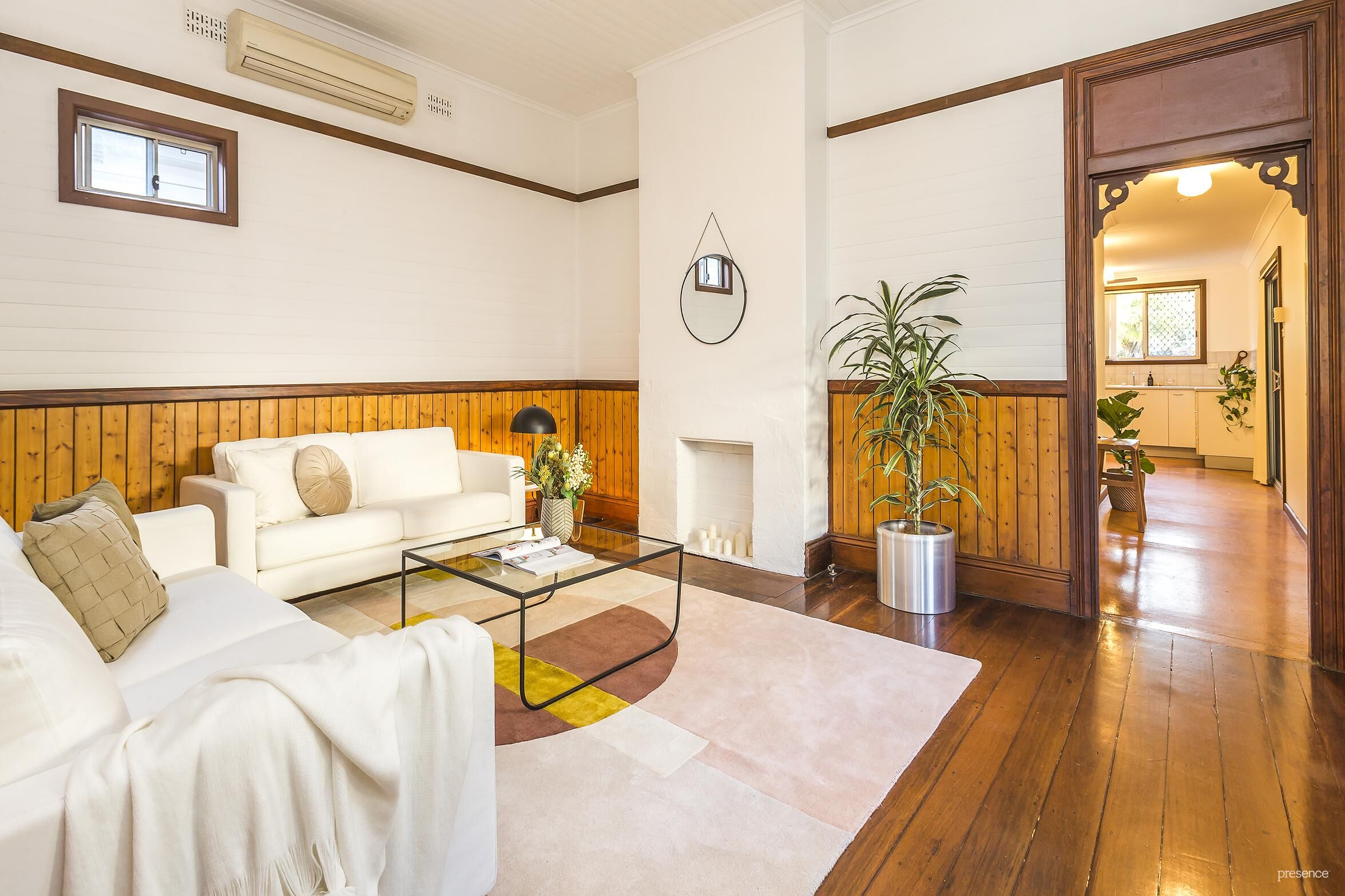 Dado boards, high ceilings and timber floors are enchanting features of its era where the traditional layout features a surprisingly spacious central lounge room, eat-in electric kitchen and bathroom/laundry. Sliding doors open to connect the home to a secure carport, which doubles as a generous alfresco entertaining area and the lovely established gardens enjoy a north facing aspect. An exceptional opportunity to capitalise on a large inner city block with a potential sun drenched north facing rear entertaining areas and deep backyard.