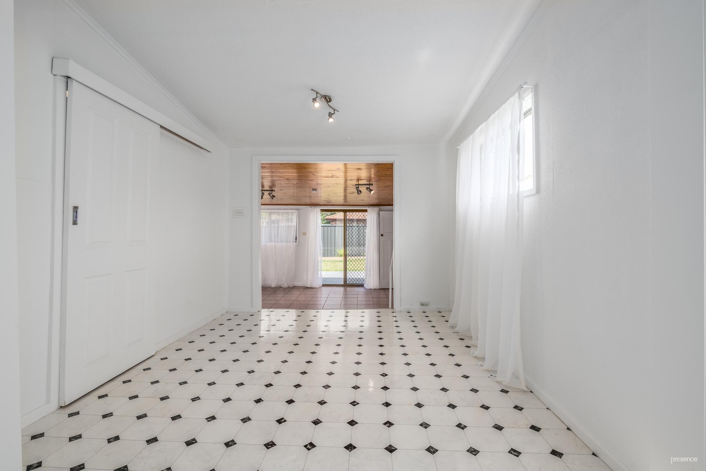 Fresh neutral décor enhanced by timber floors and high 3.1m ceilings frames the practical floorplan where bedrooms sit at the front of the layout, an air-conditioned lounge room is positioned at the home’s heart and a modern eat-in kitchen overlooks a relaxed family living area at the rear. A sliding door opens to a paved entertaining area and a fully fenced backyard for kids and pets to play. Secure driveway parking ties the bow.