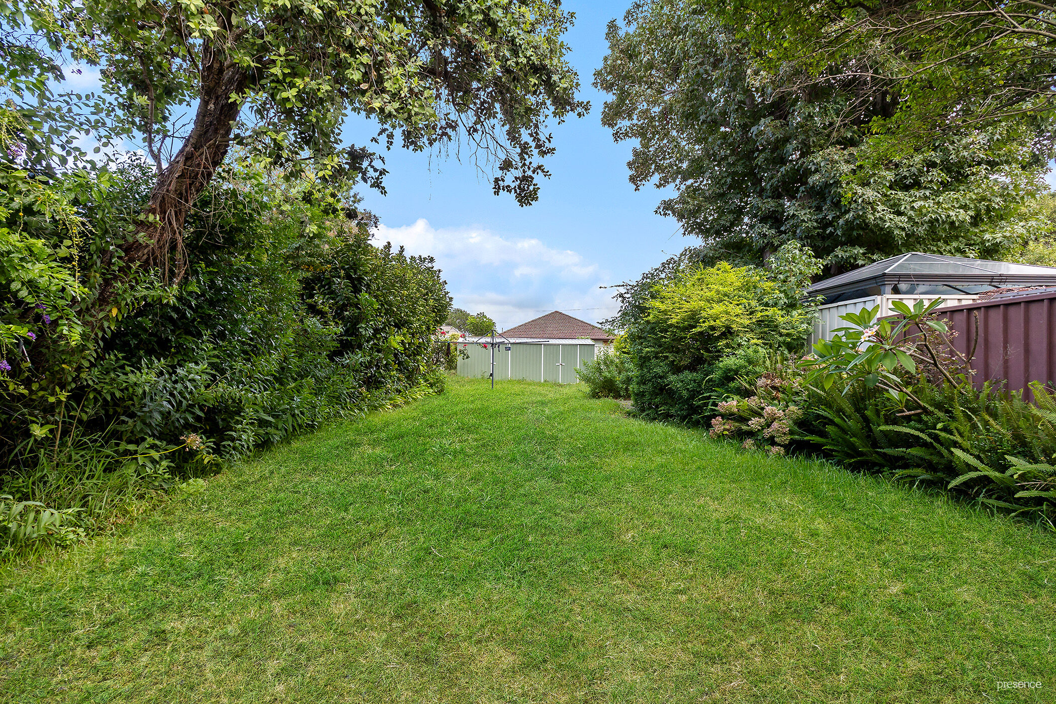 – Lengthy backyard includes a large garden shed, providing convenient storage for outdoor equipment.
