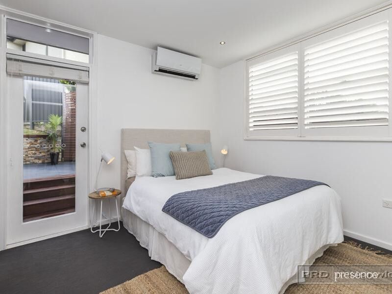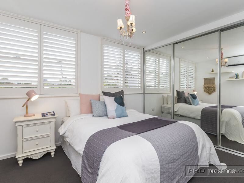 Demonstrating a floorplan that makes perfect sense, tucked away from the living spaces, two refreshed bathrooms enhance the three bedroom accommodation all appointed with air-conditioning, built-in robes and plantation shutters. The glossy white and Caesarstone kitchen will catch the eye with a full suite of Smeg cooking appliances, integrated coffee machine and Bosch dishwasher