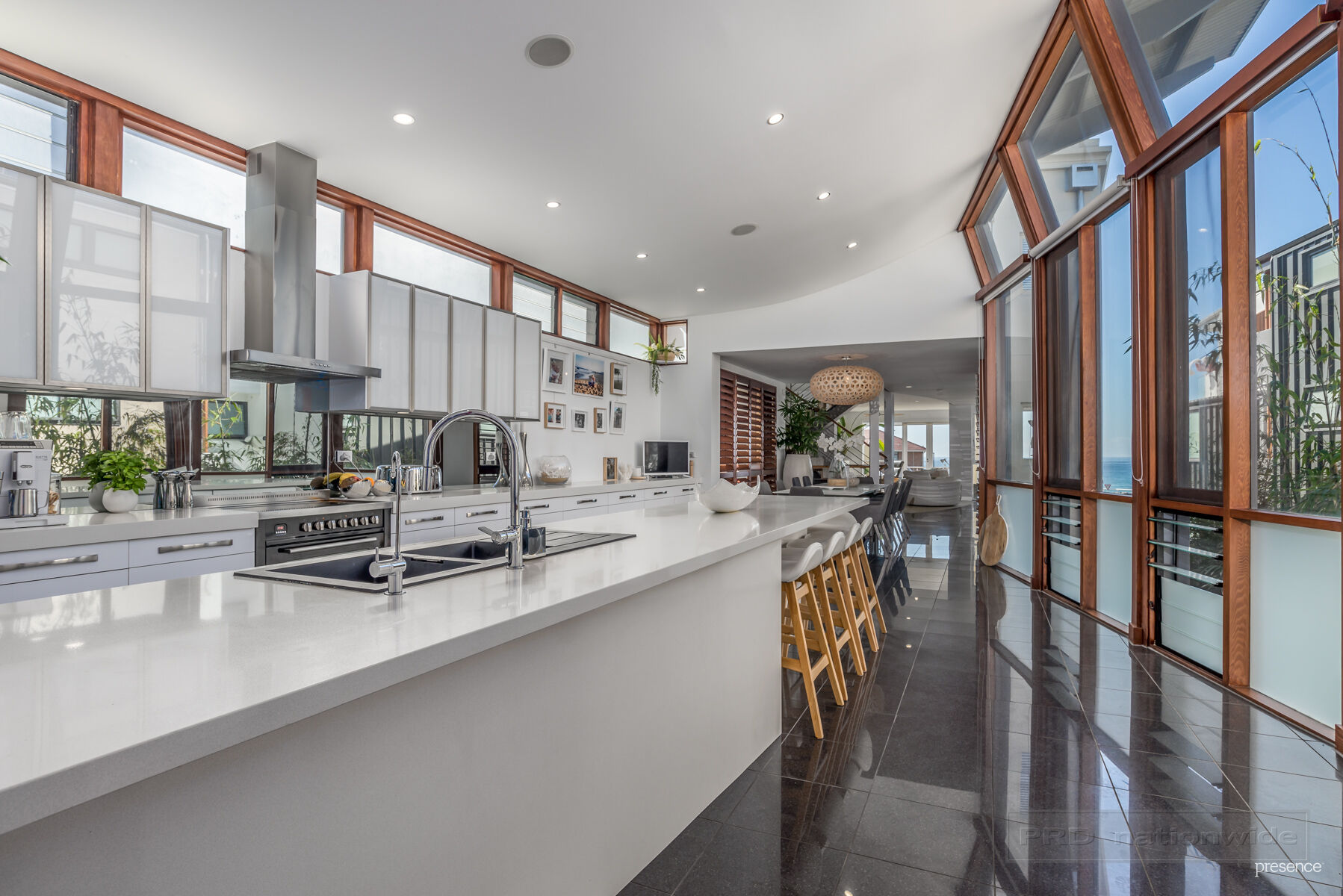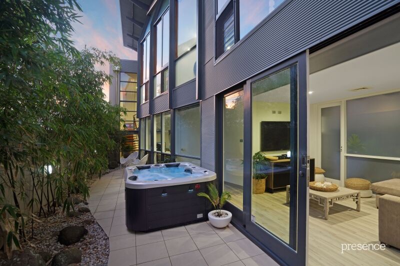 5-bedroom, 3 ½ -bathroom accommodation, multiple living zones and private outdoor entertaining areas with 8-seater spa and solar-heated plunge pool are all crowned by a spacious rooftop terrace making for a spectacular setting for alfresco meals as you soak in the 360 degree city, beach and ocean views. Central to the home, a true chef’s kitchen inspires culinary excellence boasting premium appliances, 34 drawers, walk-in pantry and 8m island bench with granite sink. Full height windows, walls of glass and louvres provide a translucency to the coastal panorama while allowing soothing coastal breezes and stunning natural light to permeate every corner of the home.