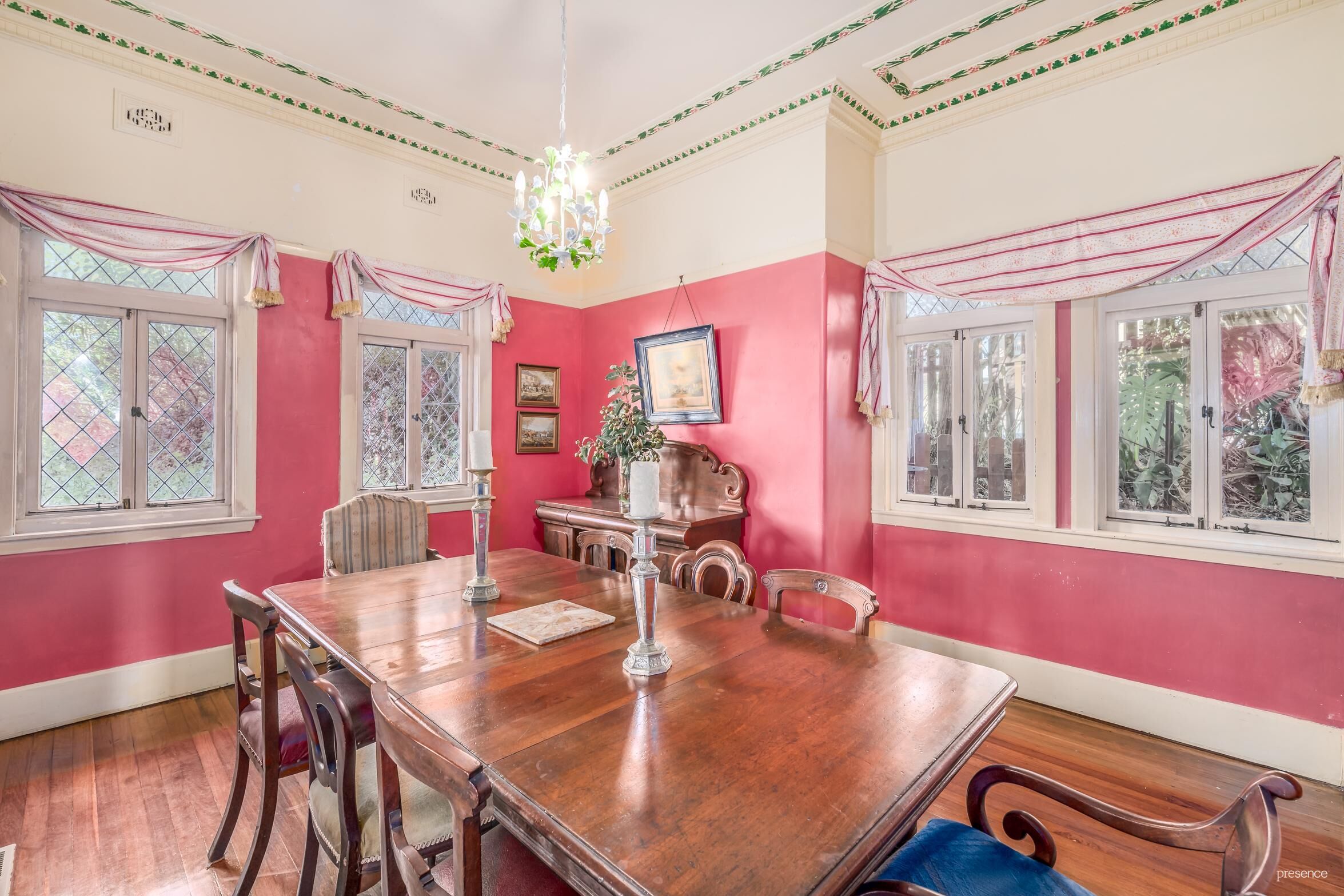 – Retained character elements include fireplaces, ornate ceilings, leadlight windows and timber French doors