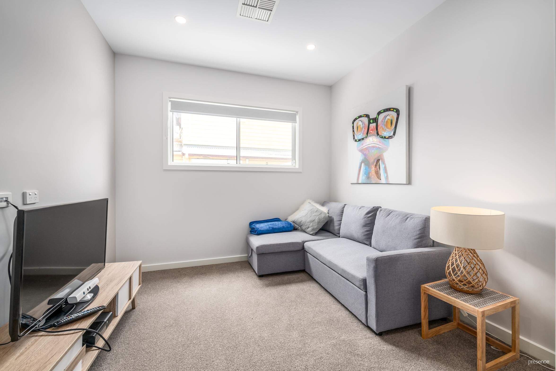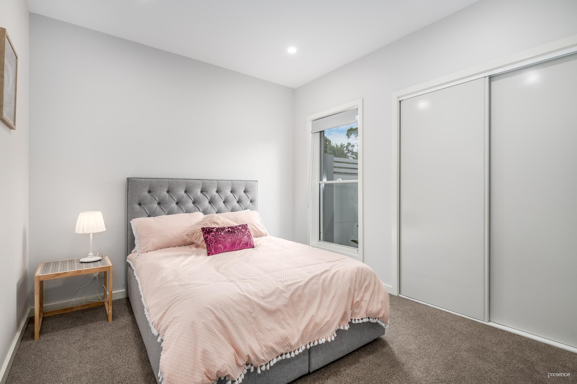 A rear northern aspect adds a significant natural attribute to the beautifully crafted living/dining space with day bed area and a kitchen featuring 40mm Quantum quartz benchtops and quality appliances. Bi-fold doors provide a seamless connection to a sunny