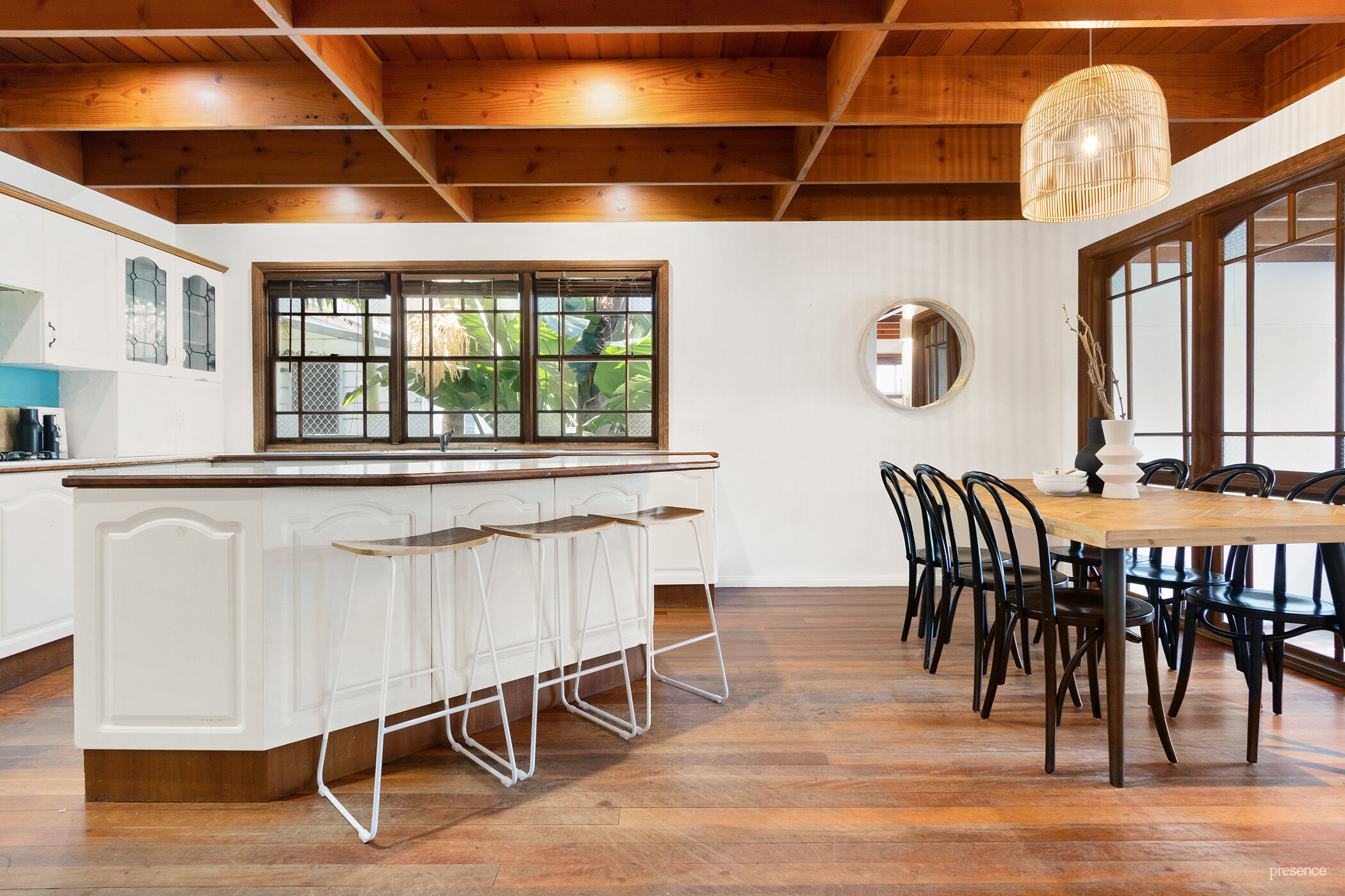 As you explore further, you’ll discover the timeless allure of timber floors, exposed timber ceilings, dado boards, and intricate fretwork, adding a touch of heart-warming charm to every corner of this home. The gas-equipped kitchen serves as the literal heart of the house, offering functionality and space while hinting at the potential for a modern makeover that would truly elevate its value.