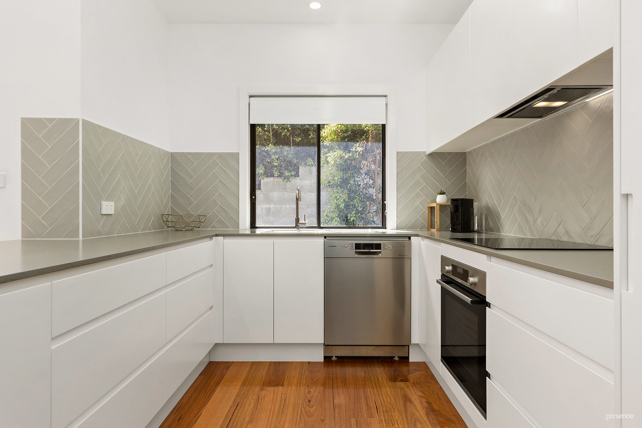 – Caesarstone kitchen appointed with Bosch dishwasher, induction cooktop, electric oven